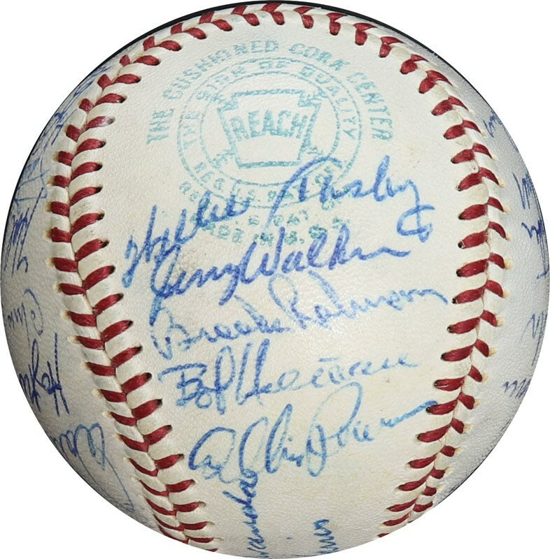 The '59 season would be the Orioles 6th season in Baltimore, Maryland. This Official American League baseball has been signed by 26 members of the 1959 Orioles including Brooks Robinson, Al Vincent, Len Burke, Jerry Walker and Gene Wooding. Rare and early Orioles baseball. Comes with an LOA from PSA/DNA as well as a auction LOA from JSA.