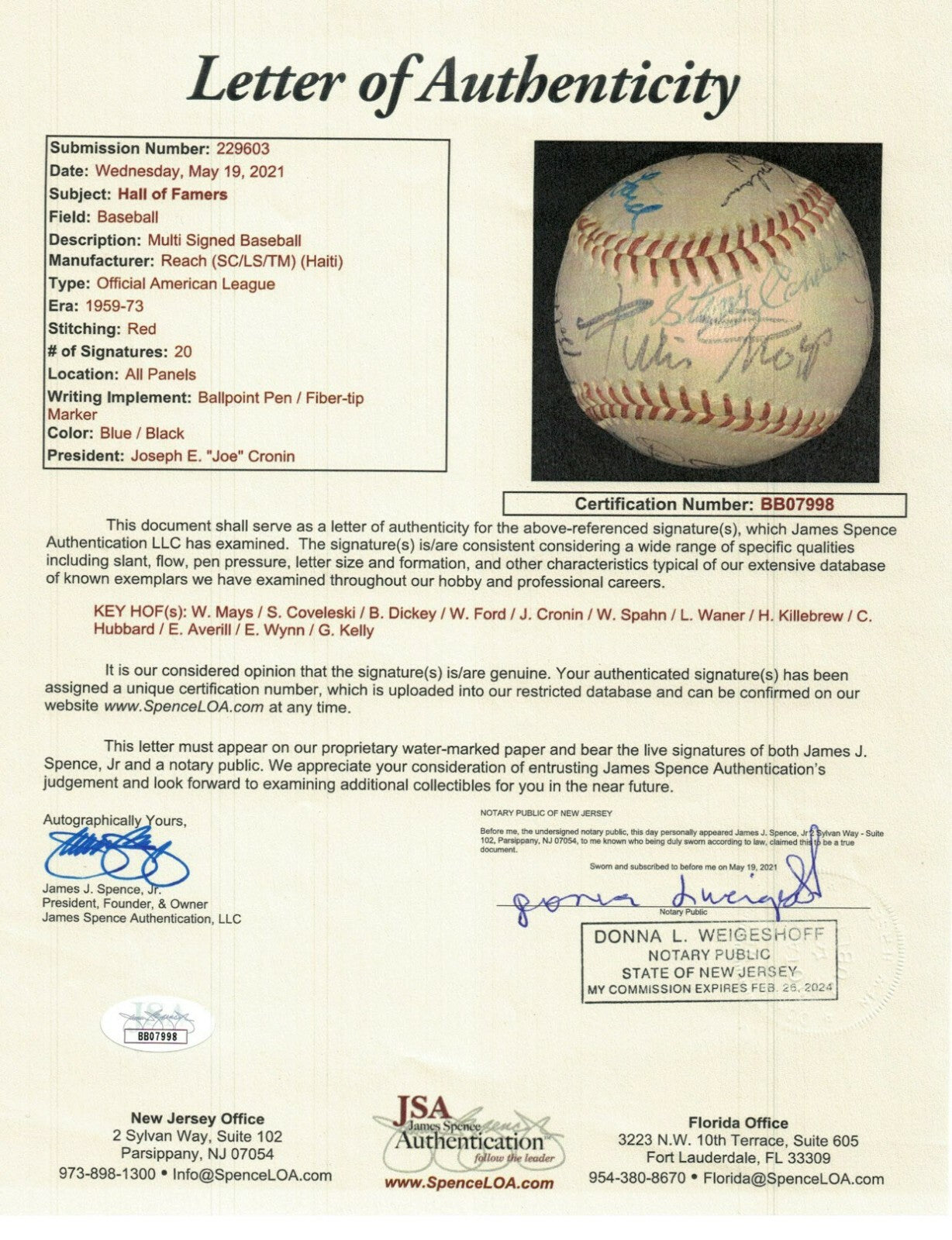 Official American League (Cronin) ball features 20 very nice signatures including: