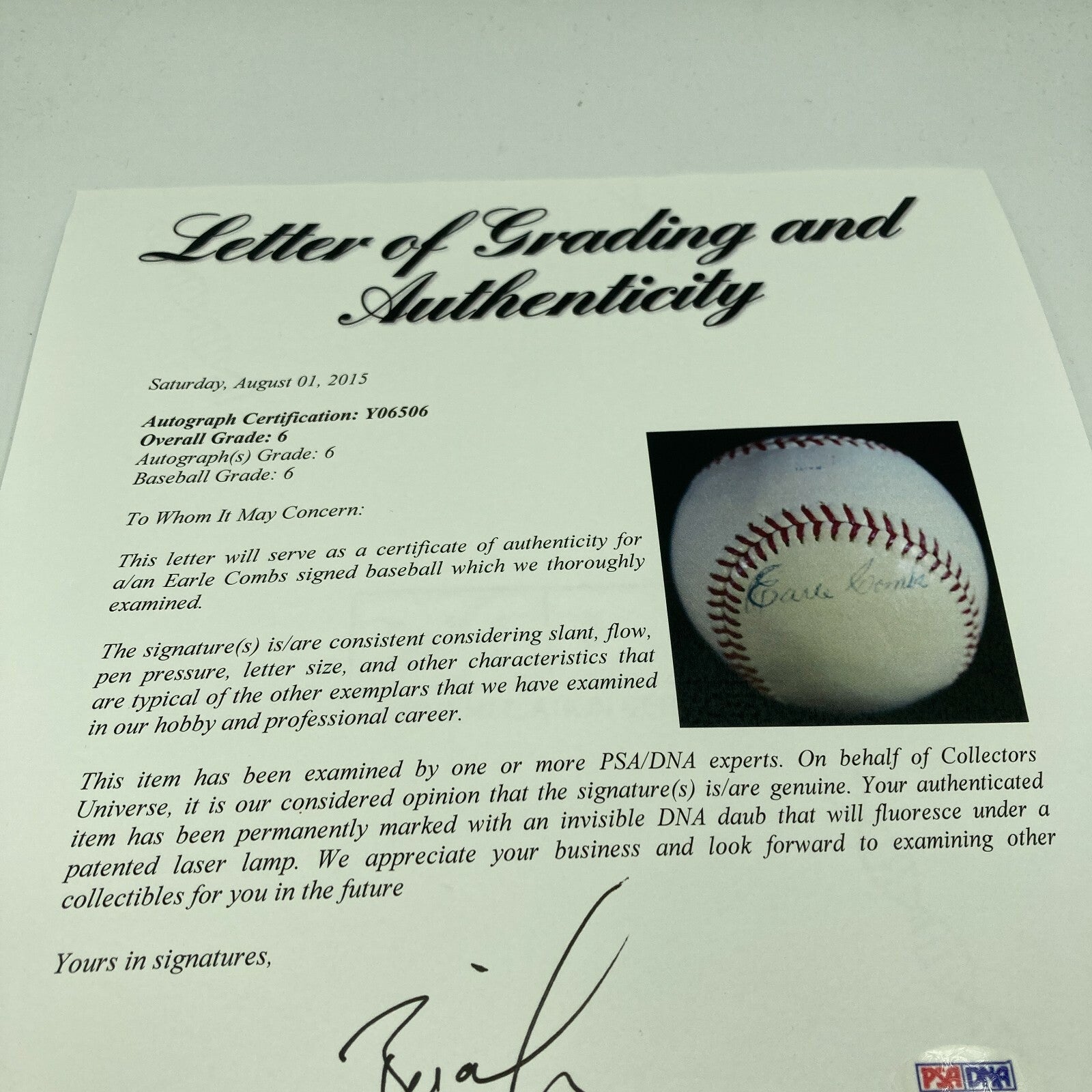 Click or scroll to zoom Tap or pinch to zoom Click or scroll to zoom Tap or pinch to zoom Click or scroll to zoom Tap or pinch to zoom Click or scroll to zoom Tap or pinch to zoom Click or scroll to zoom Tap or pinch to zoom Earle Combs Single Signed Autographed Baseball PSA DNA 1927 New York Yankees $11,995.00 1 2 3 4 5 6 7 8 9 10+ Quantity Quantity Add to cart This item is a recurring or deferred purchase. By continuing, I agree to the cancellation policy and authorize you to charge my payment method at the prices, frequency and dates listed on this page until my order is fulfilled or I cancel, if permitted. Extraordinary Earle Combs Single Signed 1950's Rawlings Baseball. One of only a few Combs single signed balls known to exist. Comes with full letter PSA DNA COA. D#S