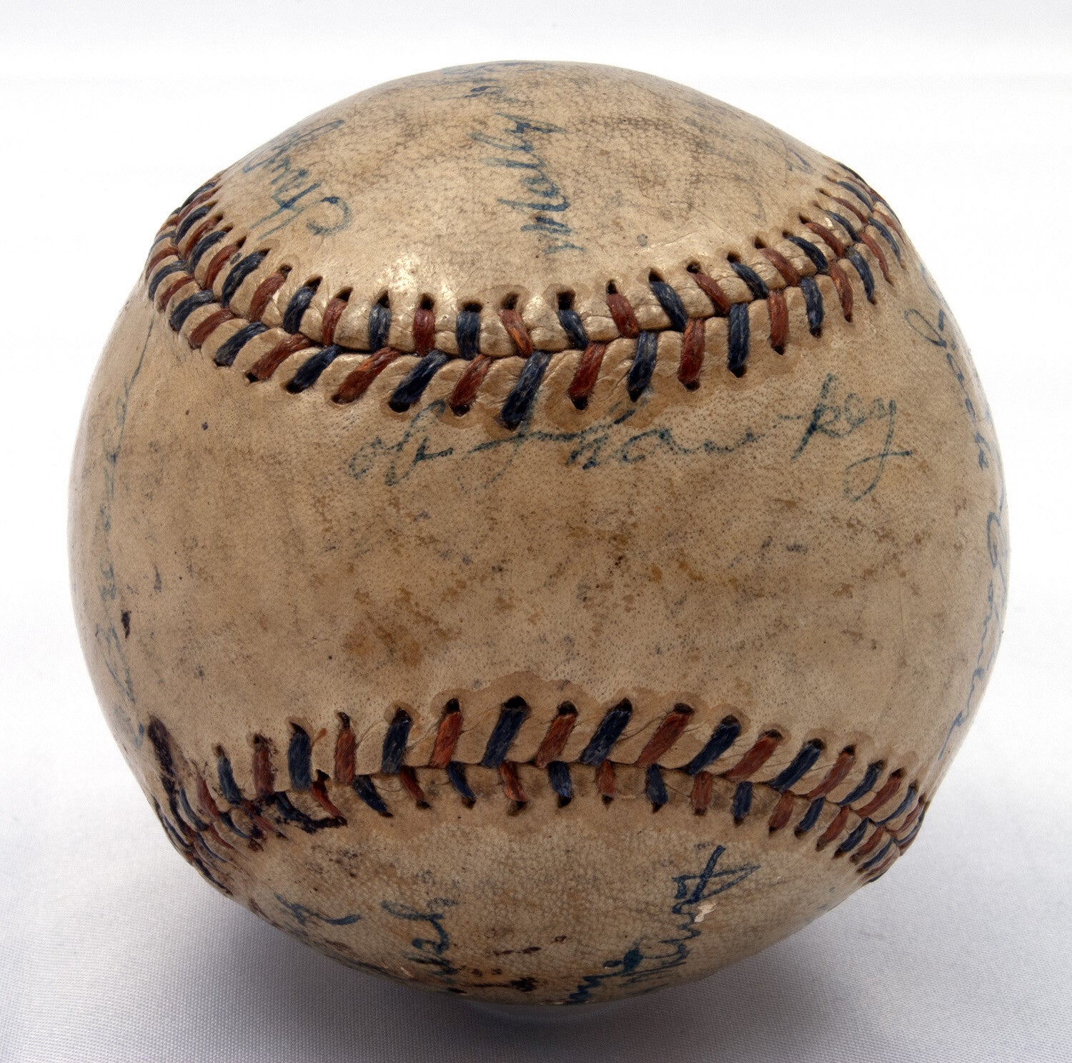 Offered here is a 1914 Philadelphia Athletics team signed baseball with 17 autographs from the American League pennant winners. It would be the last of the six pennants the A's won in their dead-ball era dynasty that began in 1901 under the legendary skipper Connie Mack. Following a shocking sweep in the World Series at the hands of the Boston Braves, a bitter Mack, faced with pressure from the onslaught of World War I and the threat of losing players to a fledgling Federal League, decided to dismantle his roster, thus setting off a treacherous stretch of seven straight seasons finishing in last place. The A's would not win another AL pennant until 1929.