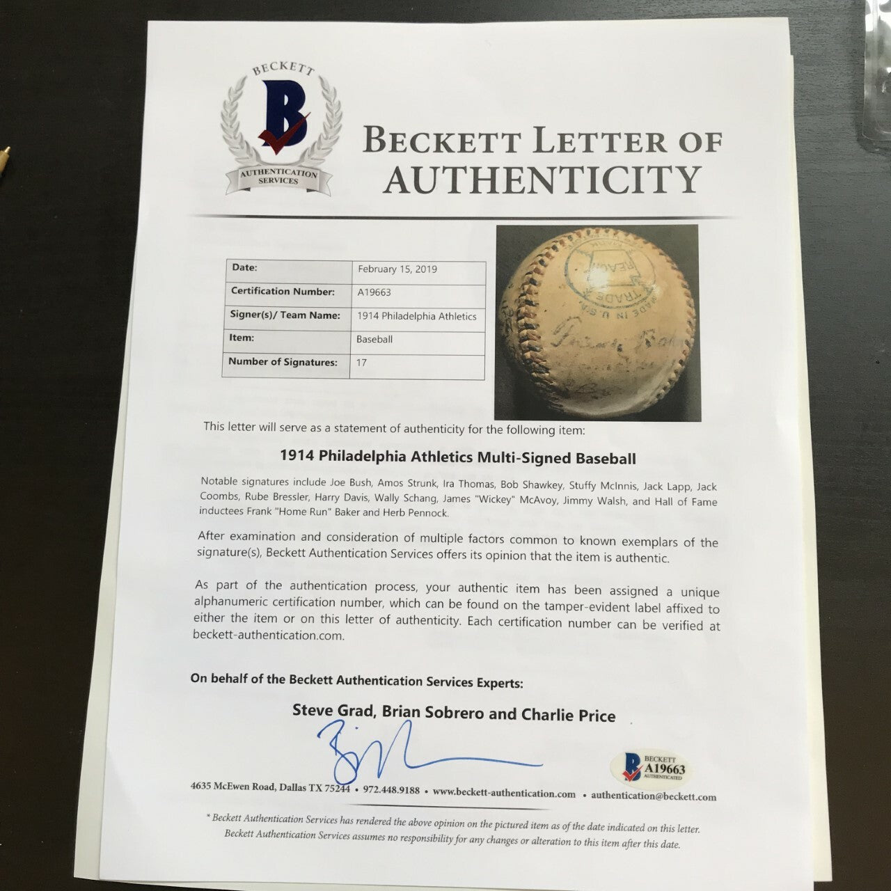 Extraordinary 1914 Philadelphia Athletics A's Team Signed Baseball Beckett COA