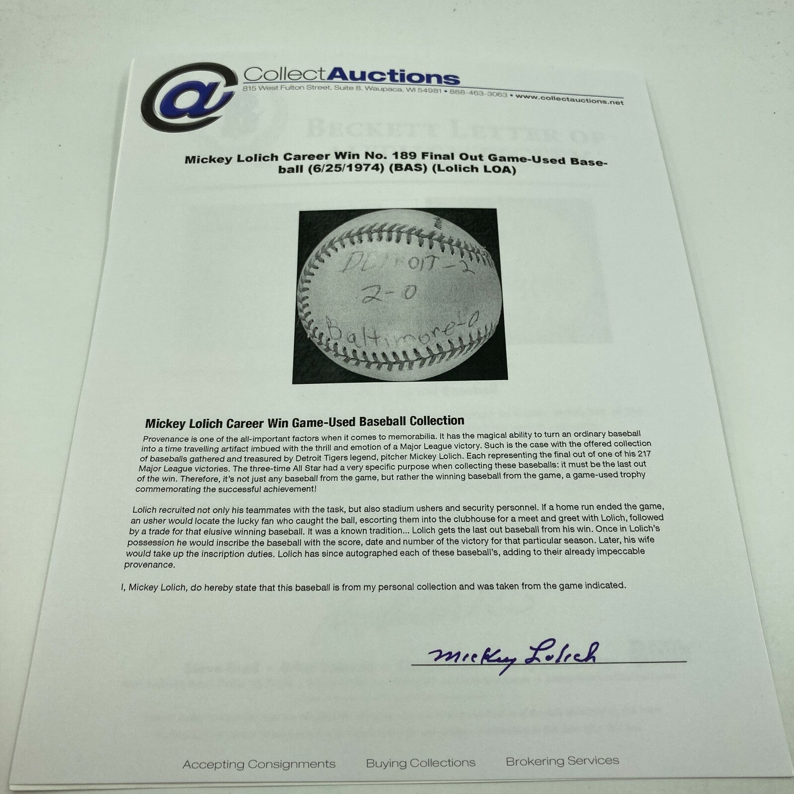 Mickey Lolich Signed Career Win No. 189 Final Out Game Used Baseball Beckett COA