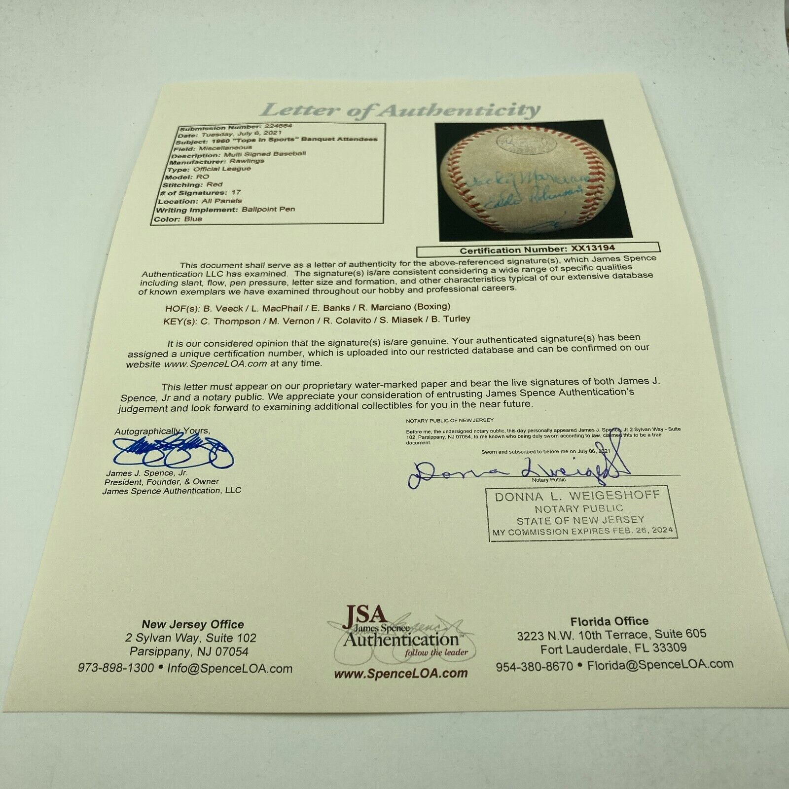 Rocky Marciano 1960 Tops In Sports Banquet Signed Baseball JSA COA