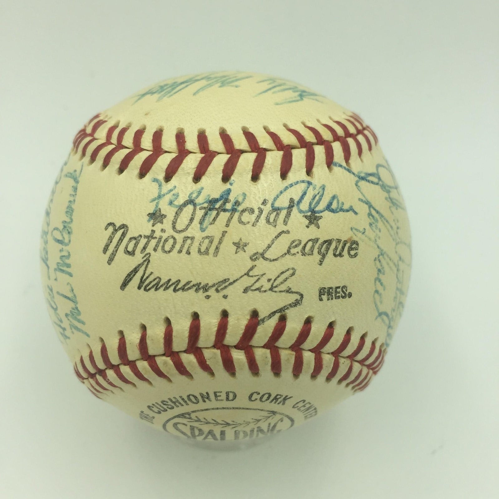 The Finest 1959 San Francisco Giants Team Signed Official National League (Giles) Baseball. 25 signatures including Willie Mays, Orlando Cepeda and Bill Rigney. This is the only 1959 Giants team signed baseball that I have every seen with an authentic Rigney signatures. Every other one that ever sold had a Rigney stamp applied to the ball.