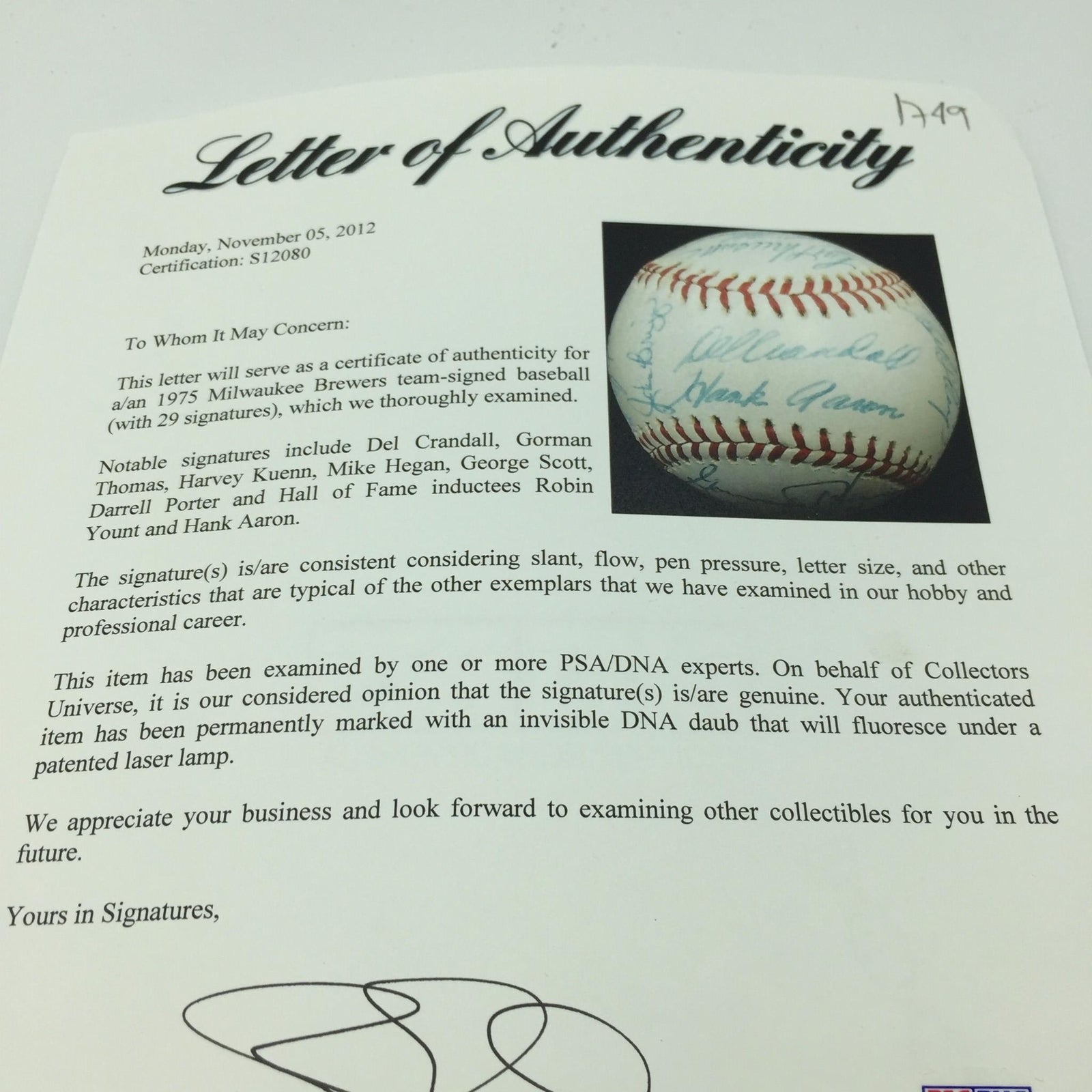 The Finest 1975 Milwaukee Brewers Team Signed AL Baseball Hank Aaron Yount PSA