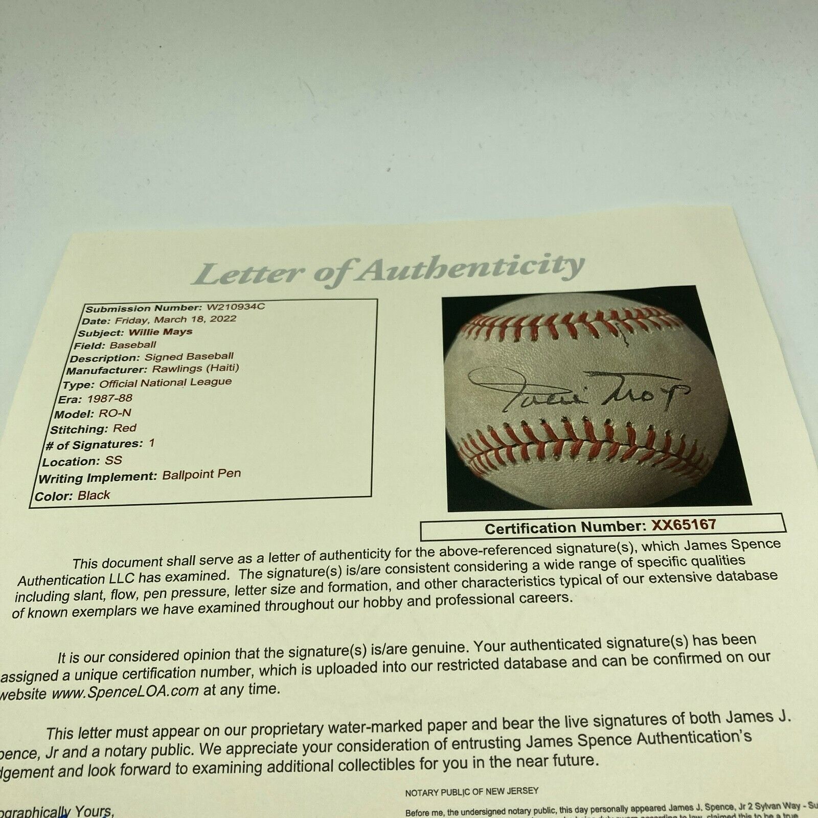 Click or scroll to zoom Tap or pinch to zoom Click or scroll to zoom Tap or pinch to zoom Click or scroll to zoom Tap or pinch to zoom Click or scroll to zoom Tap or pinch to zoom Click or scroll to zoom Tap or pinch to zoom Willie Mays Signed Official National League Baseball JSA COA $325.00 1 2 3 4 5 6 7 8 9 10+ Quantity Quantity Add to cart This item is a recurring or deferred purchase. By continuing, I agree to the cancellation policy and authorize you to charge my payment method at the prices, frequency and dates listed on this page until my order is fulfilled or I cancel, if permitted. Willie Mays Signed Official National League Baseball. Comes with a James Spence Authentication (JSA) Letter of Authenticity. D#58