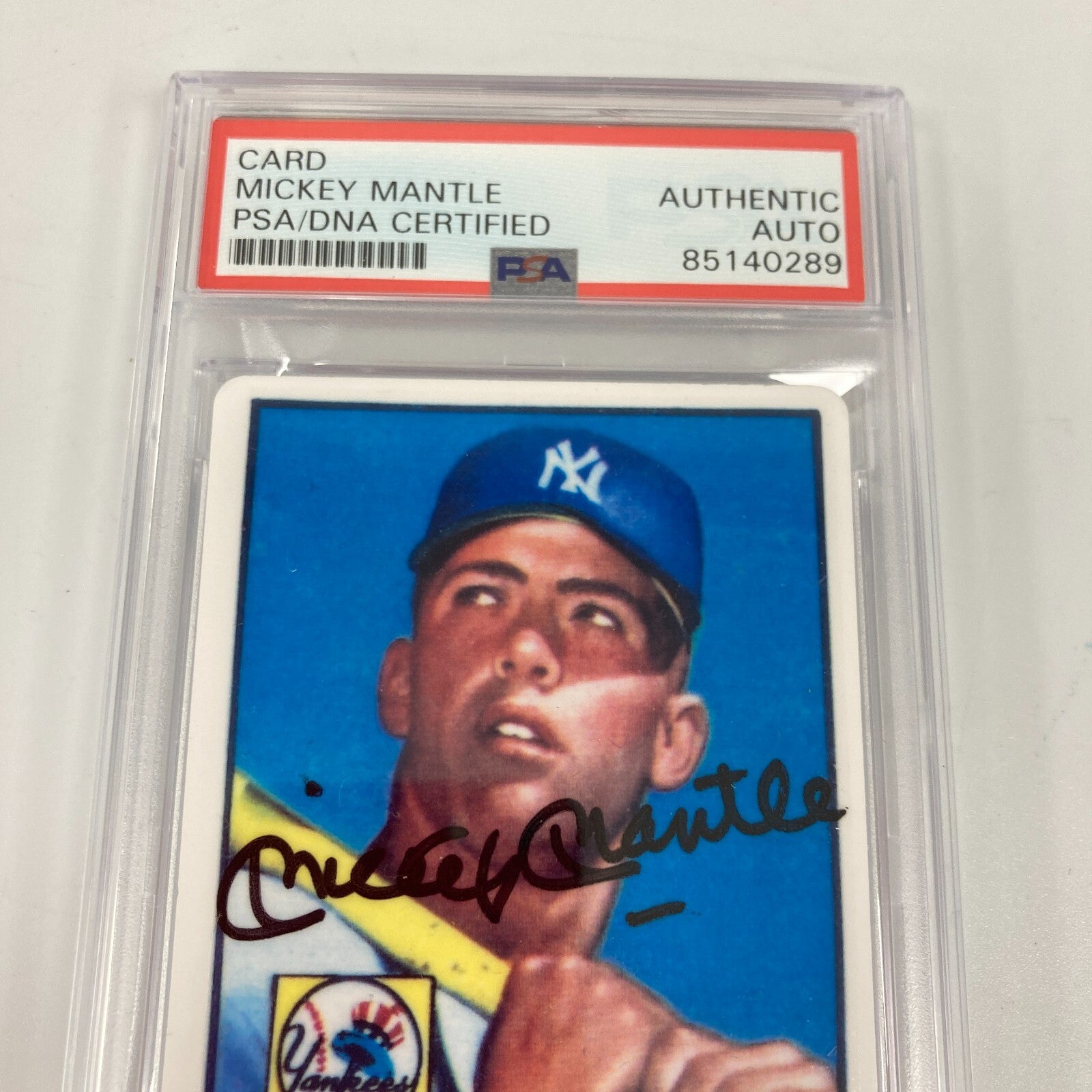 1952 Topps Mickey Mantle Signed Porcelain Baseball Card RC PSA DNA Certified