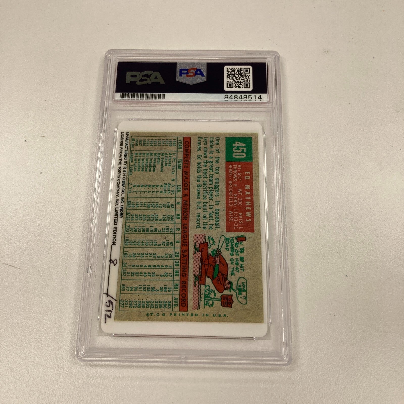 1959 Topps Eddie Mathews 512 Home Runs Signed Porcelain Baseball Card PSA DNA