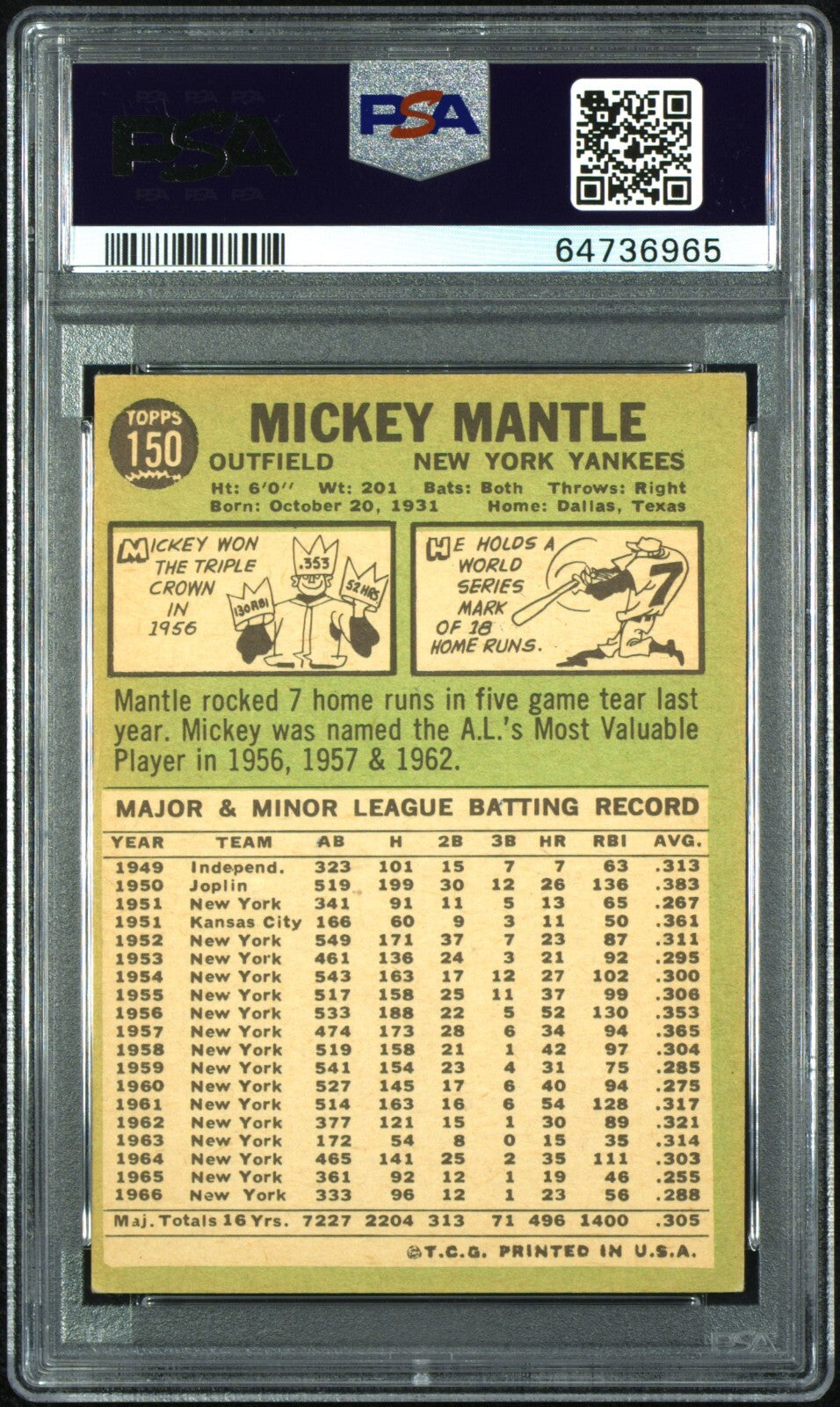 Click or scroll to zoom Tap or pinch to zoom Click or scroll to zoom Tap or pinch to zoom Click or scroll to zoom Tap or pinch to zoom Click or scroll to zoom Tap or pinch to zoom Click or scroll to zoom Tap or pinch to zoom 1967 Topps Mickey Mantle #150 Signed Baseball Card PSA DNA 8 Auto $6,995.00 1 2 3 4 5 6 7 8 9 10+ Quantity Quantity Add to cart This item is a recurring or deferred purchase. By continuing, I agree to the cancellation policy and authorize you to charge my payment method at the prices, frequency and dates listed on this page until my order is fulfilled or I cancel, if permitted. Graded 1967 Topps Mickey Mantle #150 Signed Baseball Card PSA DNA 8 Auto D#S