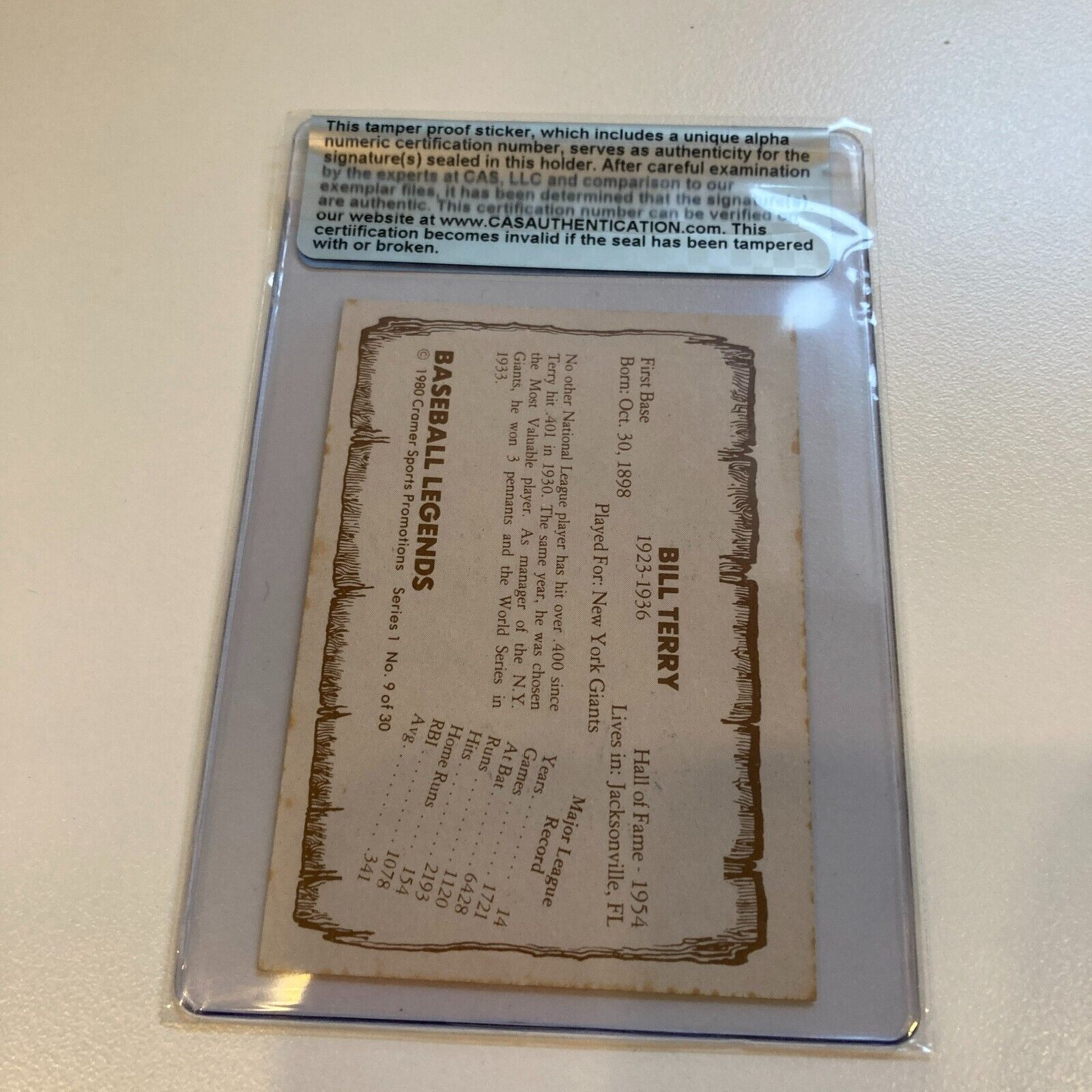 Bill Terry Signed Pacific 1980 Baseball Card CAS Certified Auto