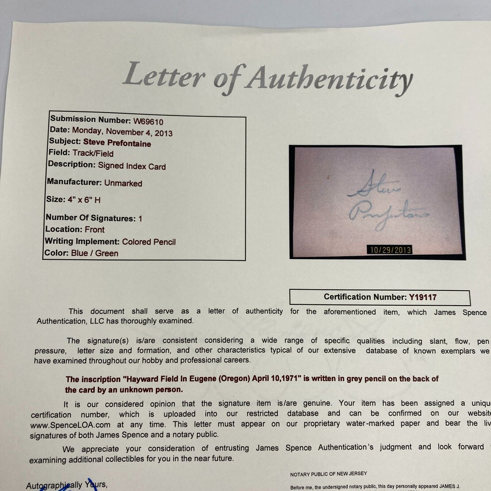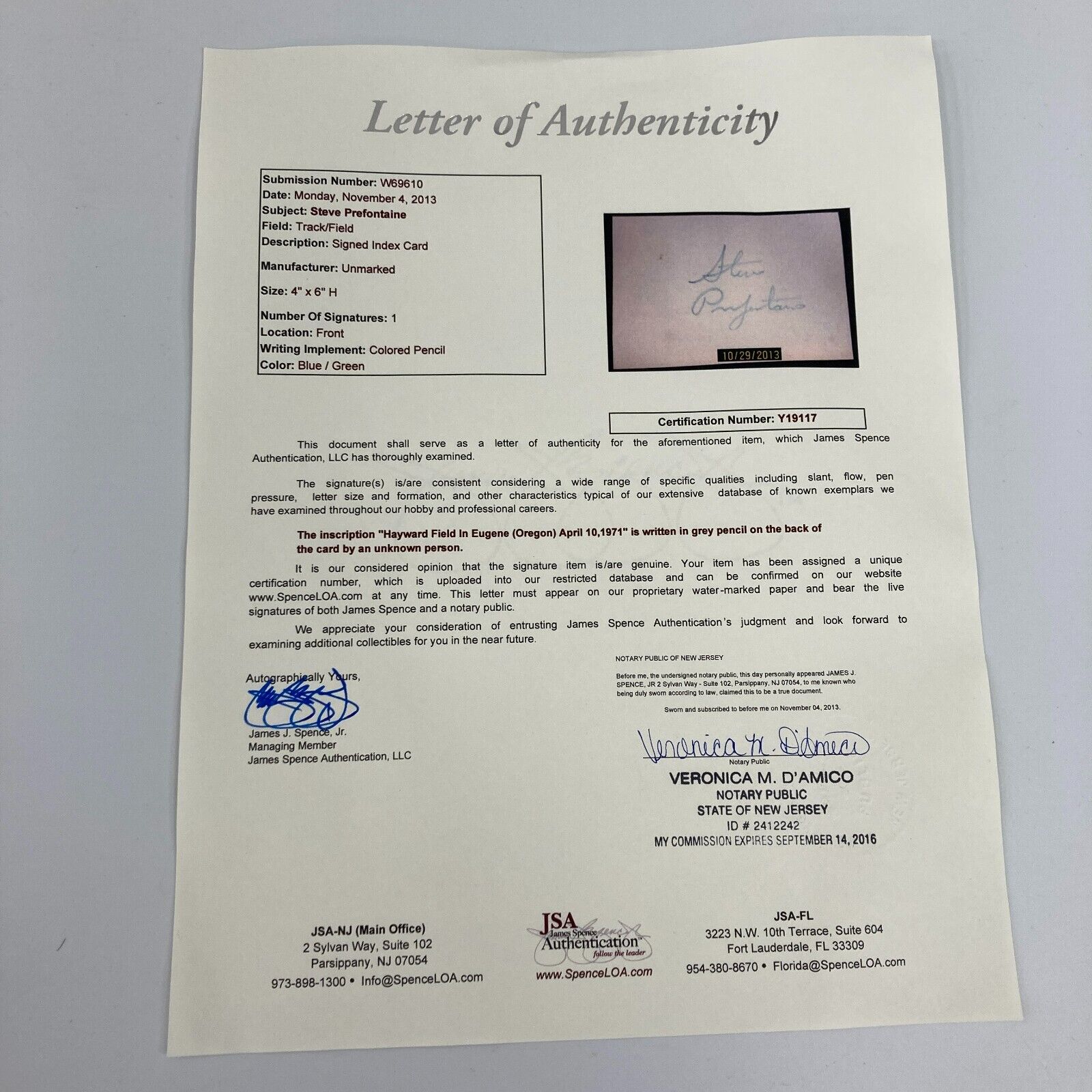 Steve Prefontaine Signed Index Card Signed In 1971 At Olympics Trial JSA COA