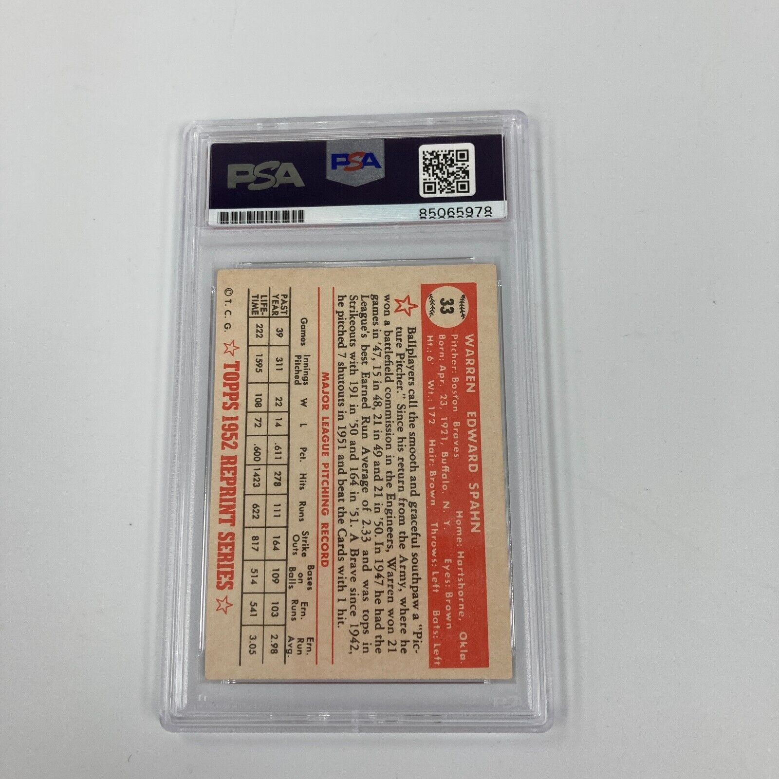 Warren Spahn Signed 1952 Topps RC Reprint Card PSA DNA Auto