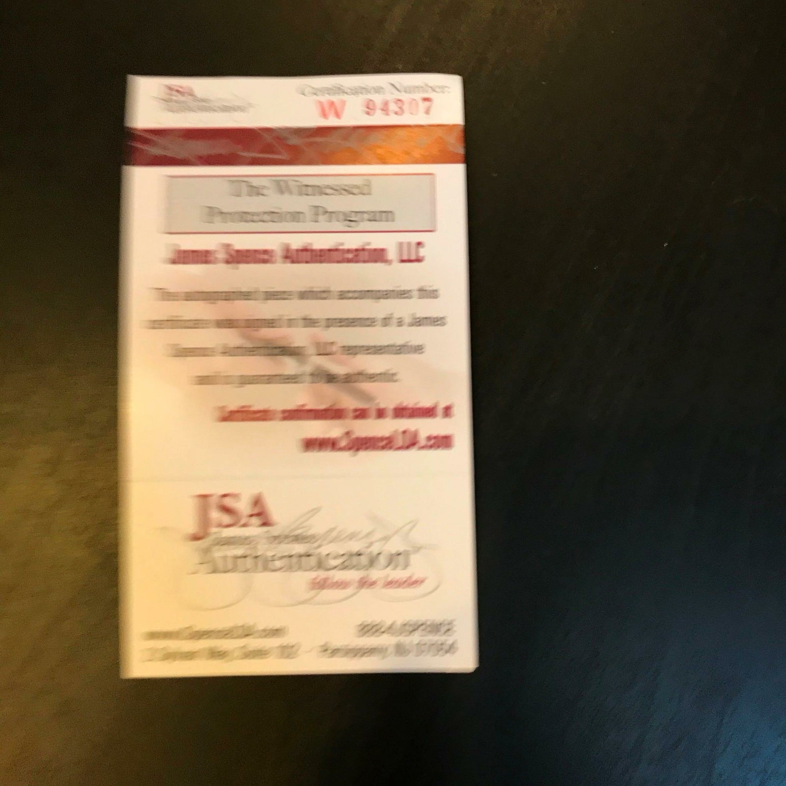 The autograph was witnessed and authenticated by James Spence Authentication (JSA), and JSA affixed its tamper-resistant certification seal to the bottom of the number ‘4’ on the back of the jersey. A JSA Certificate of Authenticity is included.