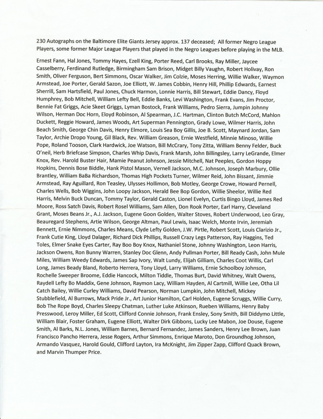 Extraordinary Negro League Legends Signed Jersey With Over 200 Autographs JSA