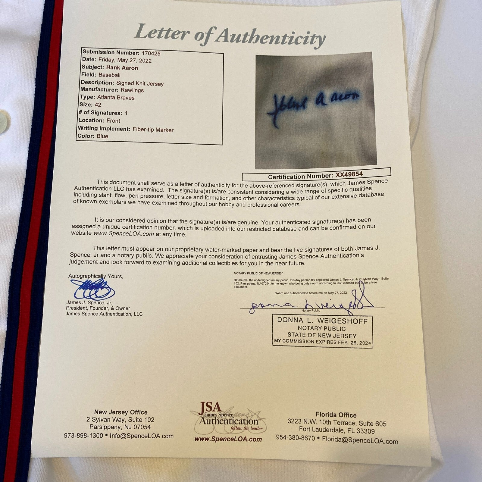 Comes with full letter JSA COA.