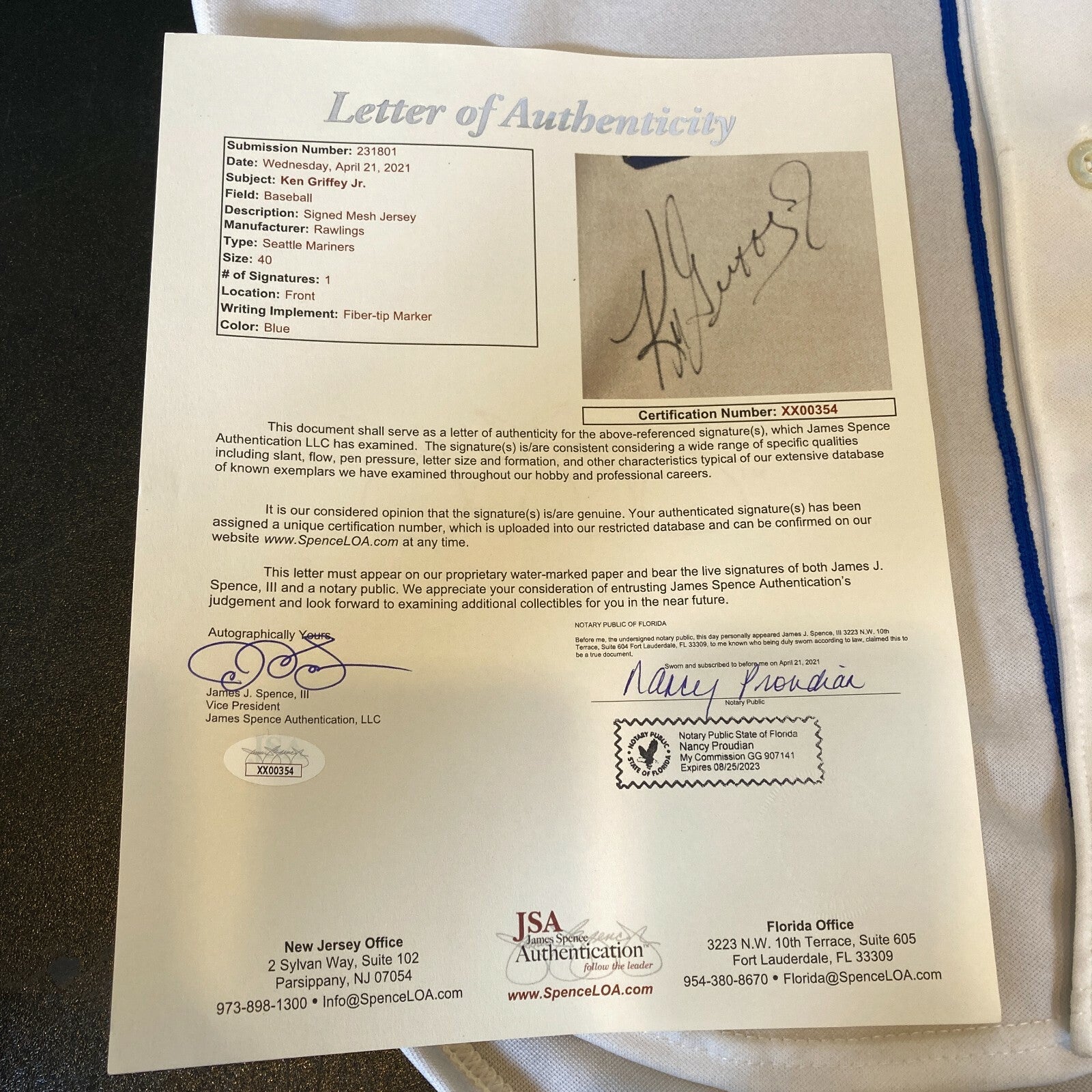 Ken Griffey Jr. Signed 1989 Seattle Mariners Rookie Game Model Jersey JSA COA. The jersey has some staining, see the photos.