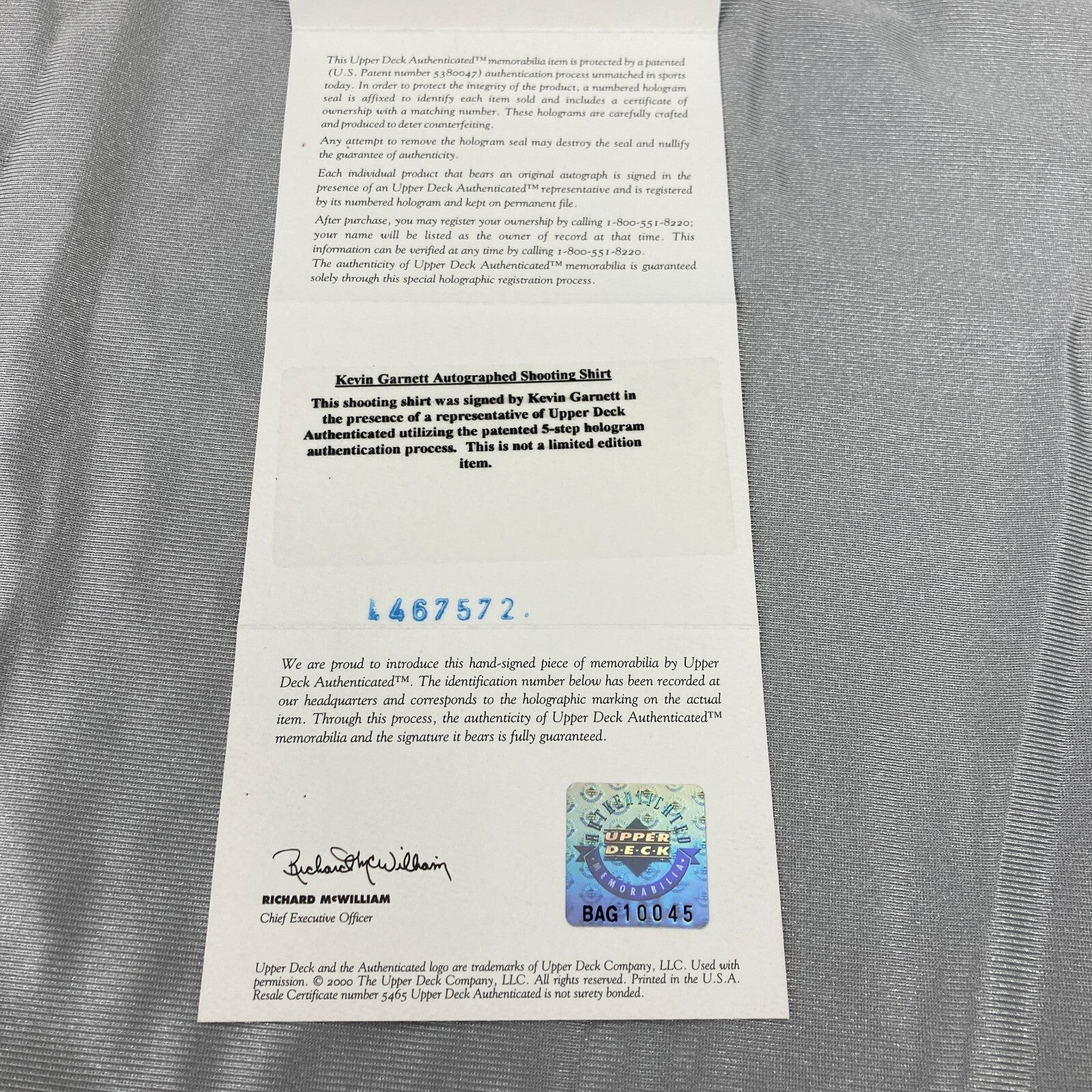 Kevin Garnett Signed Timberwolves Warm-up Jersey Shooting Shirt Upper Deck UDA COA