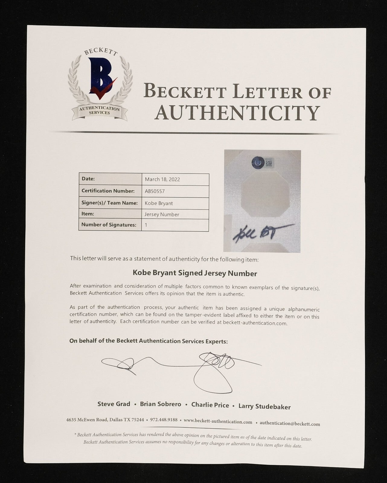 Authentic 2002-03 Mitchell & Ness Lakers All-Star Game Jersey signed on the back #8 by Kobe Bryant in bold, black marker. Perfect vintage, full name Kobe Bryant signature. Very Rare. Incredibly rare vintage Kobe Bryant full name signature. Kobe Bryant autographed Mitchell & Ness jerseys are extremely rare, especially this popular 1996-97 rookie 50th Anniversary Mitchell & Ness with gold NBA logo. Original authentic Mitchell & Ness jersey with tags still intact. Stunningly attractive jersey. Accompanied by PSA/DNA and Beckett Letters of Authenticity.