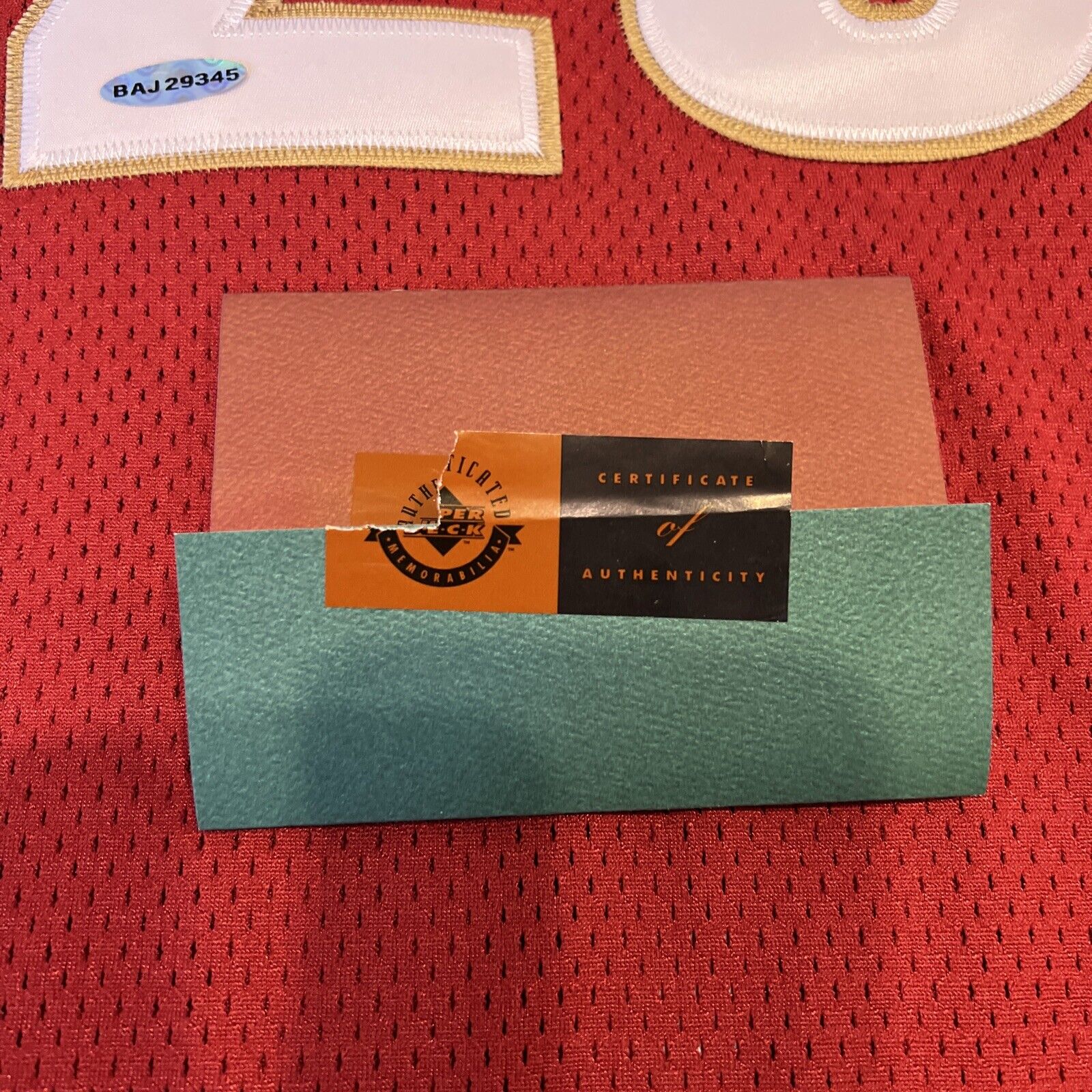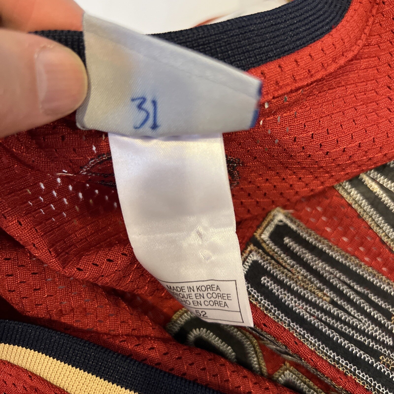 LeBron James has been the consensus best player in the NBA practically since his debut in the 2003-04 NBA season. James excels at every facet of basketball, averaging roughly 27 points, seven rebounds, and seven assists per game for his career. A four-time MVP and 13-time All-NBA First Team selection, James has built himself a Hall of Fame career. This size 52 Reebok road burgundy Cavaliers jersey is in the style of James’ 2003-04 uniform, and features “CAVALIERS” sewn on the chest in white and gold tackle twill. James’ number “23” is sewn on the front and back of the jersey in white and gold tackle twill. “JAMES” is sewn across the back shoulders in white and gold tackle twill. James has signed the “2” digit diagonally on the back of this jersey in black marker. This signed jersey comes with a COA from Upper Deck Authenticated (BAJ29345).