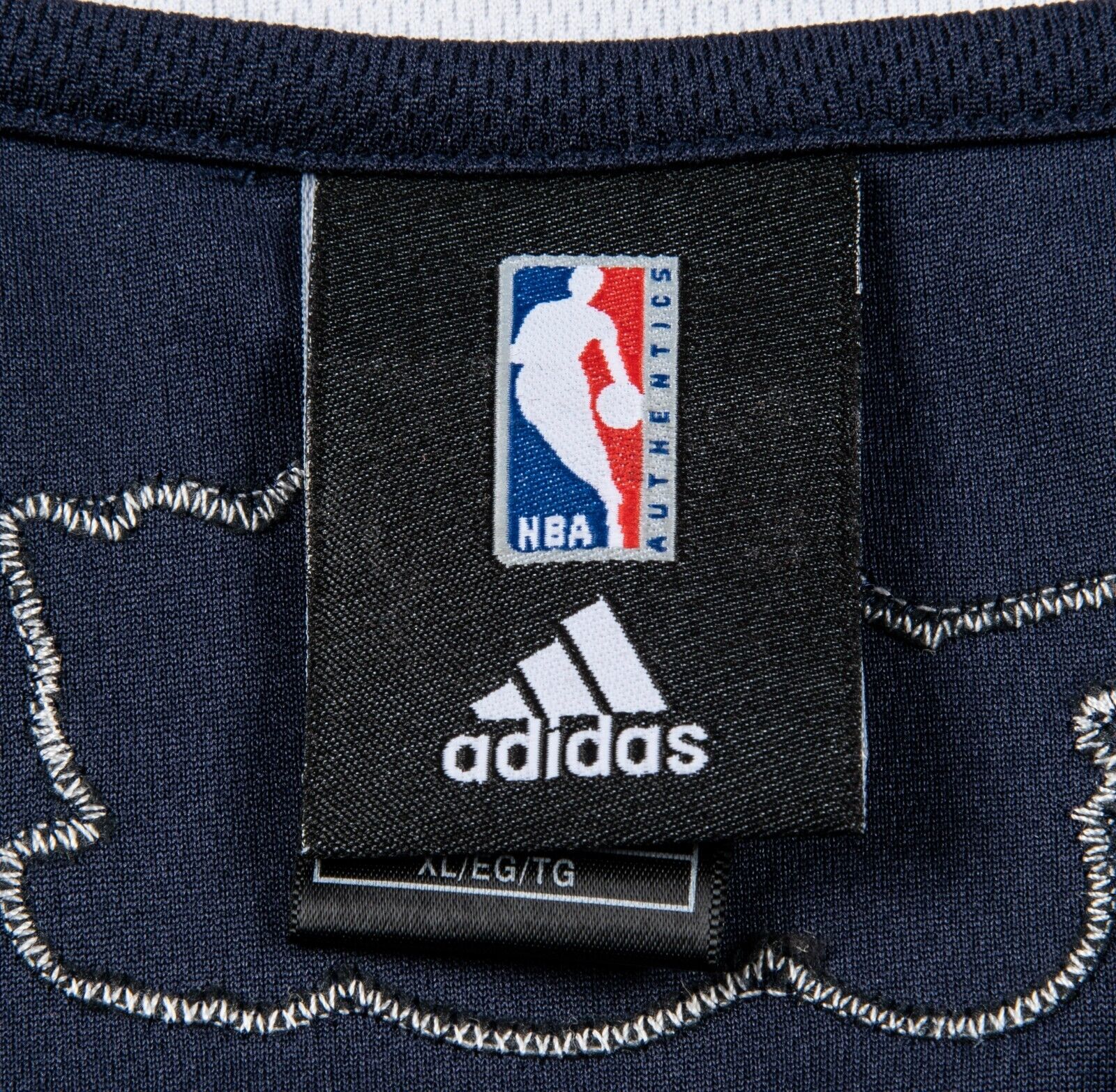 The black mesh jersey features "EAST" stylized in white, baby blue, and navy tackle twill. The number "23" appears in white, baby blue, and navy tackle twill on the jersey's chest and back. Multi-colored stripes consisting of white, baby blue, and navy adorn the lateral sides. An Adidas logo in white appears on the right chest, while the NBA All-Star Game patch rests on the left chest. An Adidas/NBA Authentics All-Star Phoenix 2009 tag with "XL" and "LENGTH +2" flags rests on the front left tail. A Cleveland Cavaliers logo rests on the back collar. "JAMES" appears on the lower rear tail in white tackle twill. James penned his flowing signature with a black marker on the number "2" on the jersey's back. The item comes with an LOA from JSA for James' signature.