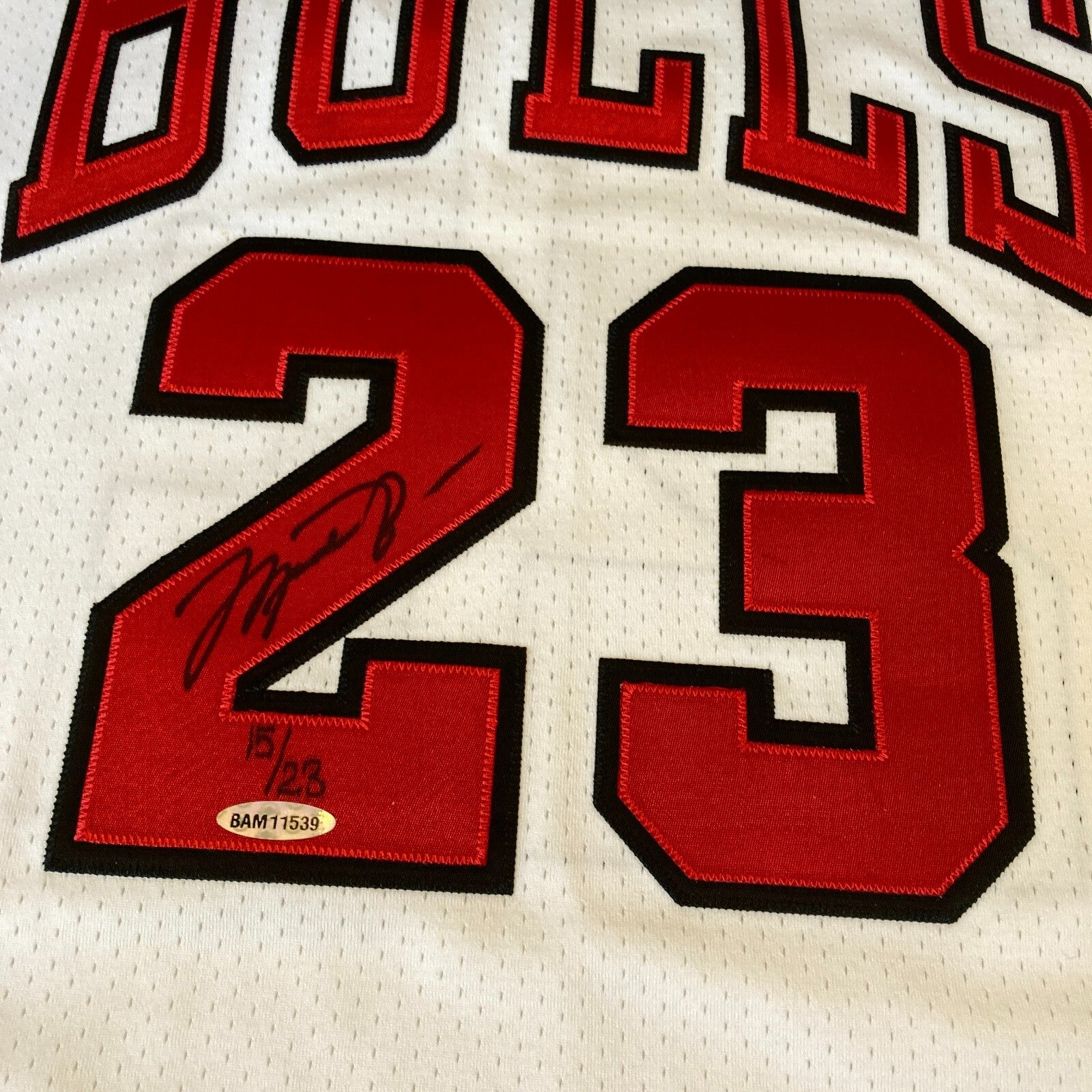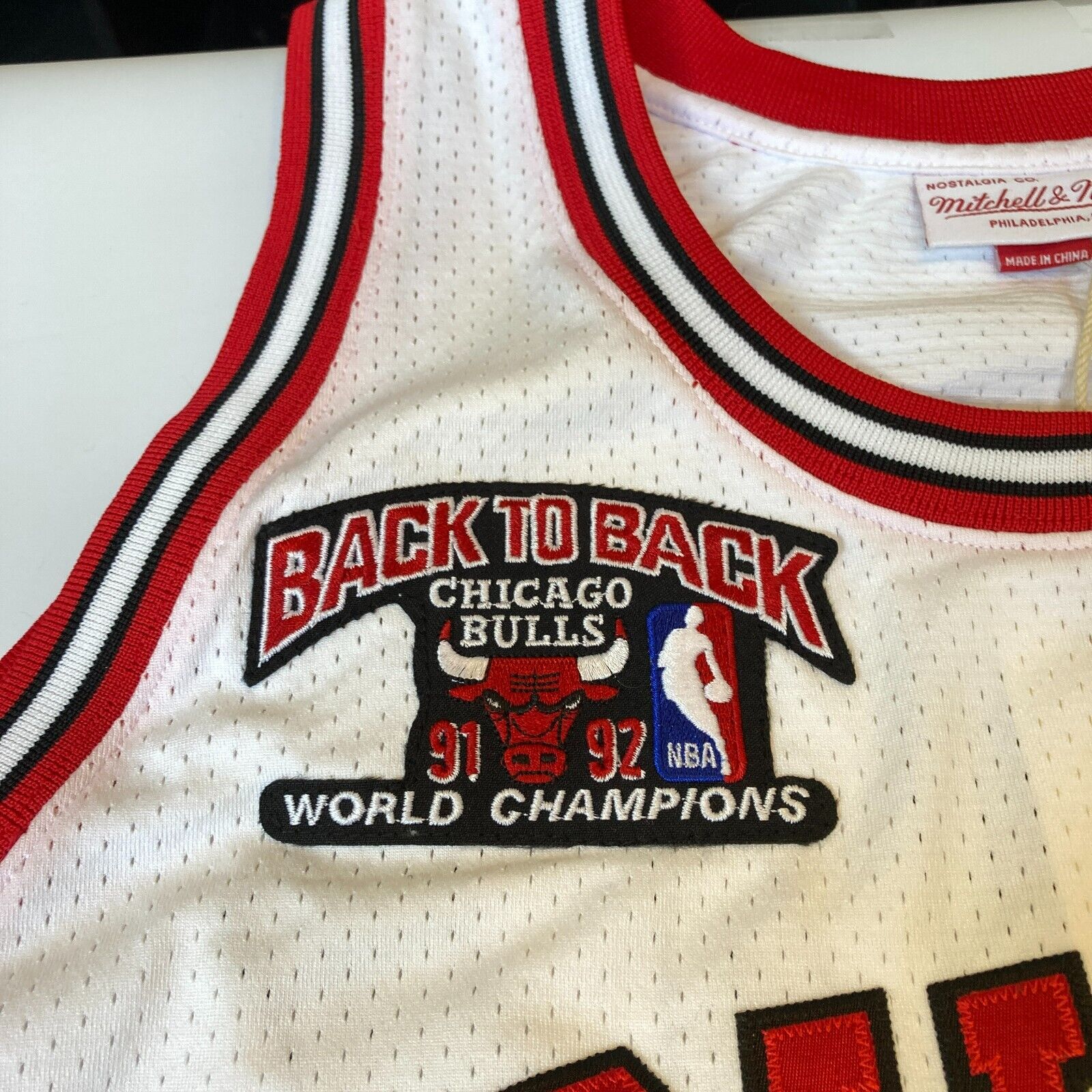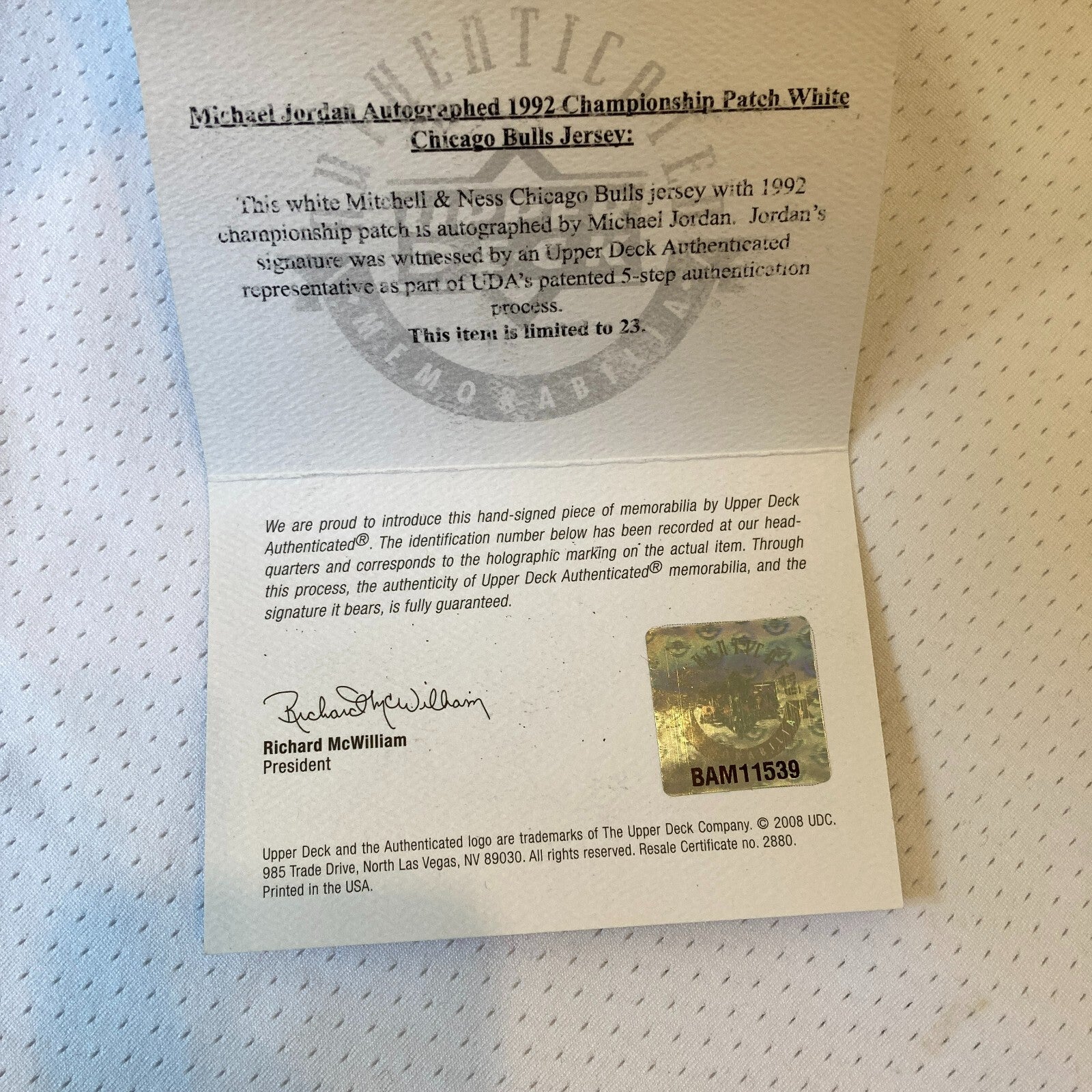 Beautiful Michael Jordan Signed Authentic Hardwood Classics Mitchell & Ness Chicago Bulls 1991-1992 Back To Back Champs Jersey With Upper Deck UDA COA. Limited edition 15/23.