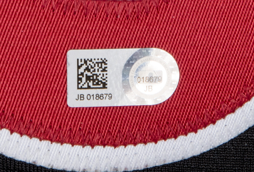 This jersey is black, with white sleeves. “AMERICAN” is sewn across the front in white and red tackle twill on a black nameplate. Nine red stars are embroidered under “AMERICAN”. “CRUZ” is sewn across the back shoulders in white tackle twill beneath an All-Star Game 2015 patch. Cruz’s number “23” is sewn on the back in red and white tackle twill. A Mariners “S” patch is sewn on the left sleeve above a white Majestic logo. A Majestic tag is sewn on the front left tail of this button down jersey, while a size 48 tag has been applied to the back inside collar. This jersey comes with a MLB Authenticated hologram (JB 018679) and a LOA from PSA/DNA (AC01235).