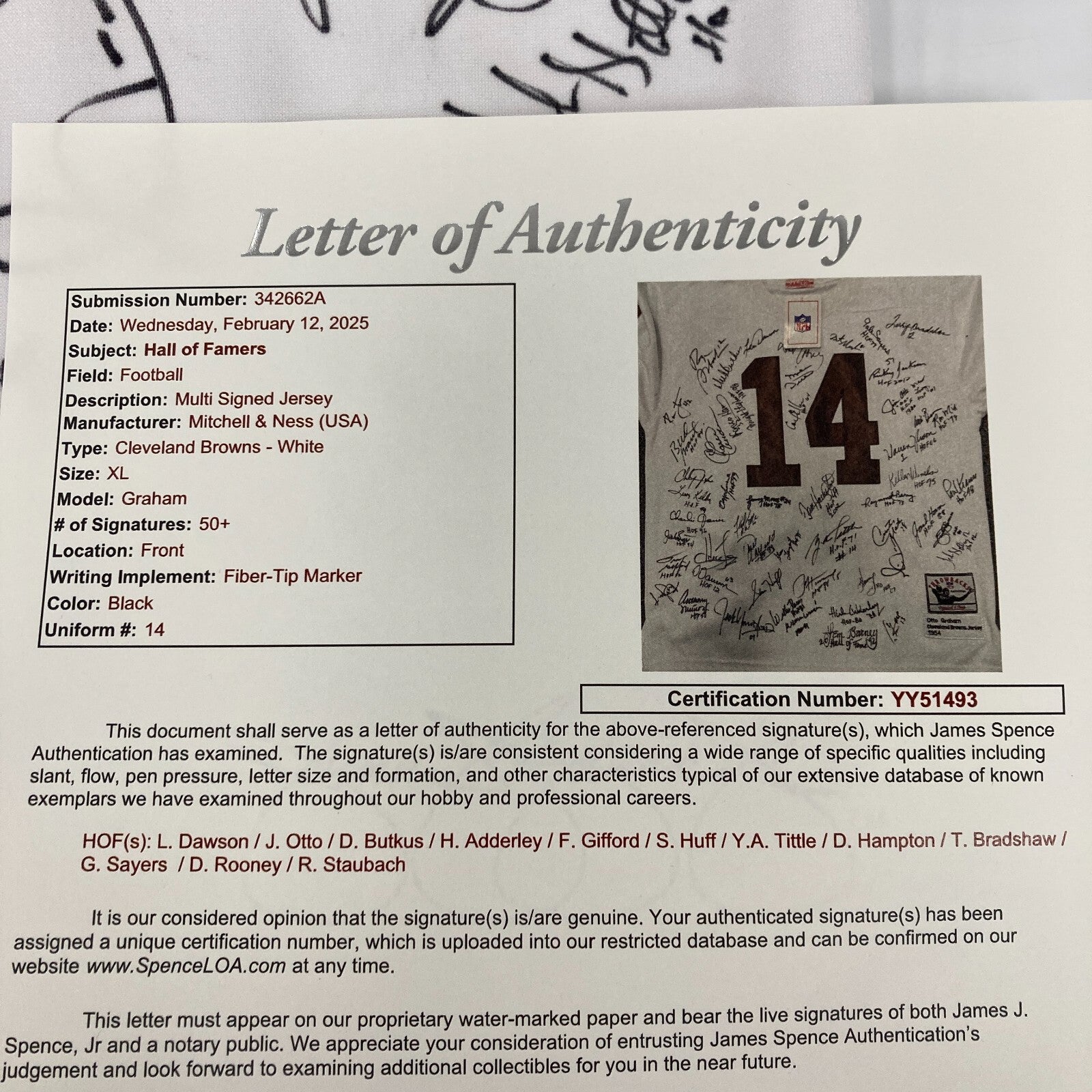 NFL Hall Of Fame Multi Signed Authentic Otto Graham Mitchell & Ness Jersey With 50+ Hall Of Fame Signatures: