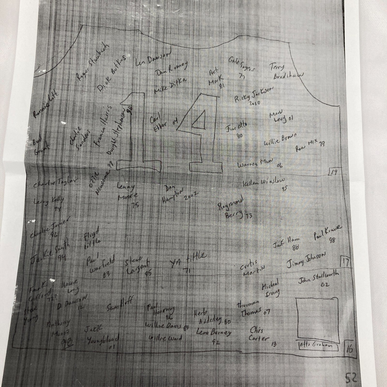 Len Dawson, Jim Otto, Dick Butkus, Herb Adderley, Frank Gifford, S. Huff , Y.A. Tittle , D. Hampton , Terry Bradshaw, Gale Sayers, D. Rooney, Roger Staubach Franco Harris, Jim Otto, Marv Levy and many others.