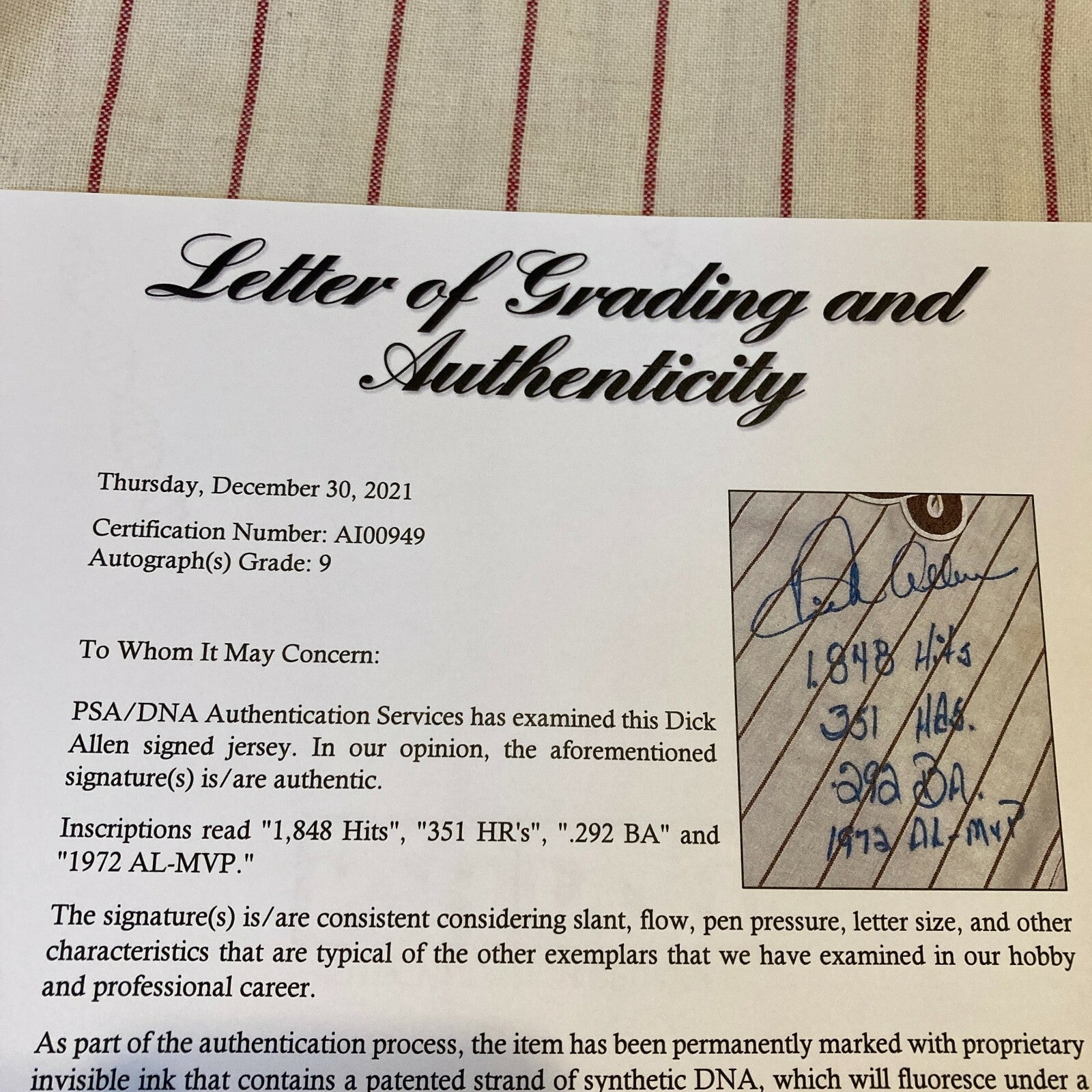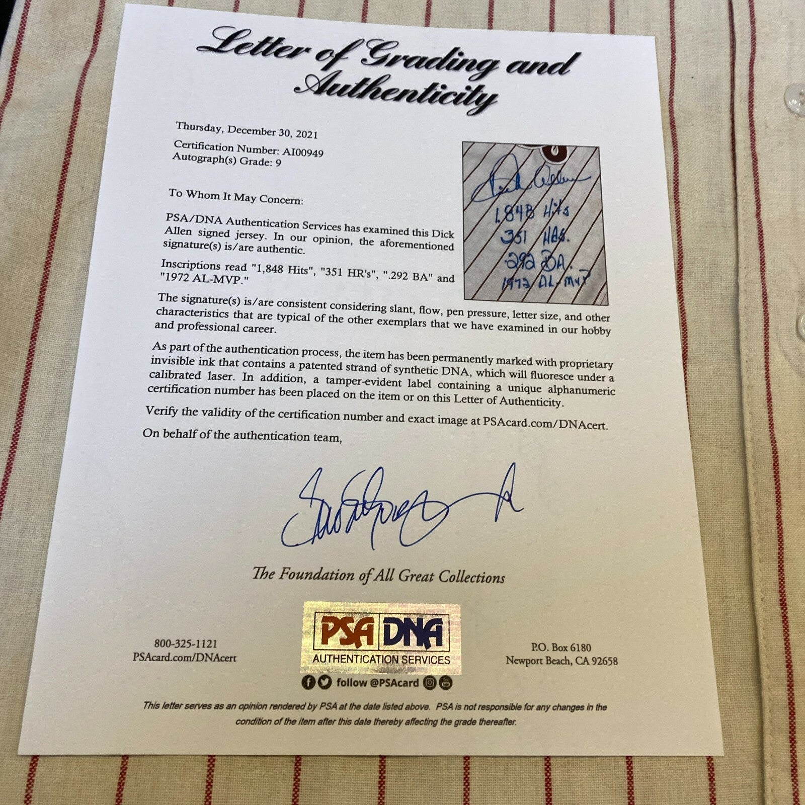 Click or scroll to zoom Tap or pinch to zoom Click or scroll to zoom Tap or pinch to zoom Click or scroll to zoom Tap or pinch to zoom Click or scroll to zoom Tap or pinch to zoom Click or scroll to zoom Tap or pinch to zoom Click or scroll to zoom Tap or pinch to zoom Click or scroll to zoom Tap or pinch to zoom Click or scroll to zoom Tap or pinch to zoom The Finest Dick Richie Allen Signed Phillies STAT Jersey PSA DNA MINT 9 $14,995.00 1 2 3 4 5 6 7 8 9 10+ Quantity Quantity Add to cart This item is a recurring or deferred purchase. By continuing, I agree to the cancellation policy and authorize you to charge my payment method at the prices, frequency and dates listed on this page until my order is fulfilled or I cancel, if permitted. The Finest Dick Allen Signed heavily inscribed Stats Authentic Philadelphia Phillies Mitchell & Ness Game Model Jersey With PSA DNA COA T#10