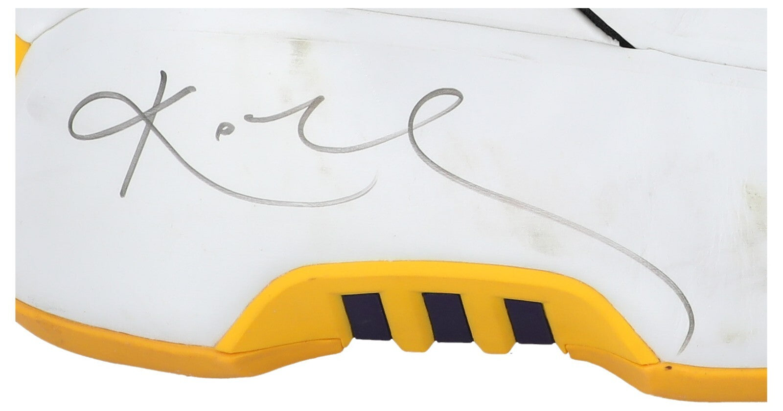 One of the more futuristic models ever to see NBA play, Kobe 2 marked the beginning of the end for Bryant's Adidas endorsement, and it's remembered for its prominent toe box, space-age design, and Kobe silhouette logo. Both size-14 shoes feature the Laker colorway and are nicely autographed in the Mamba's trademark flowing style.