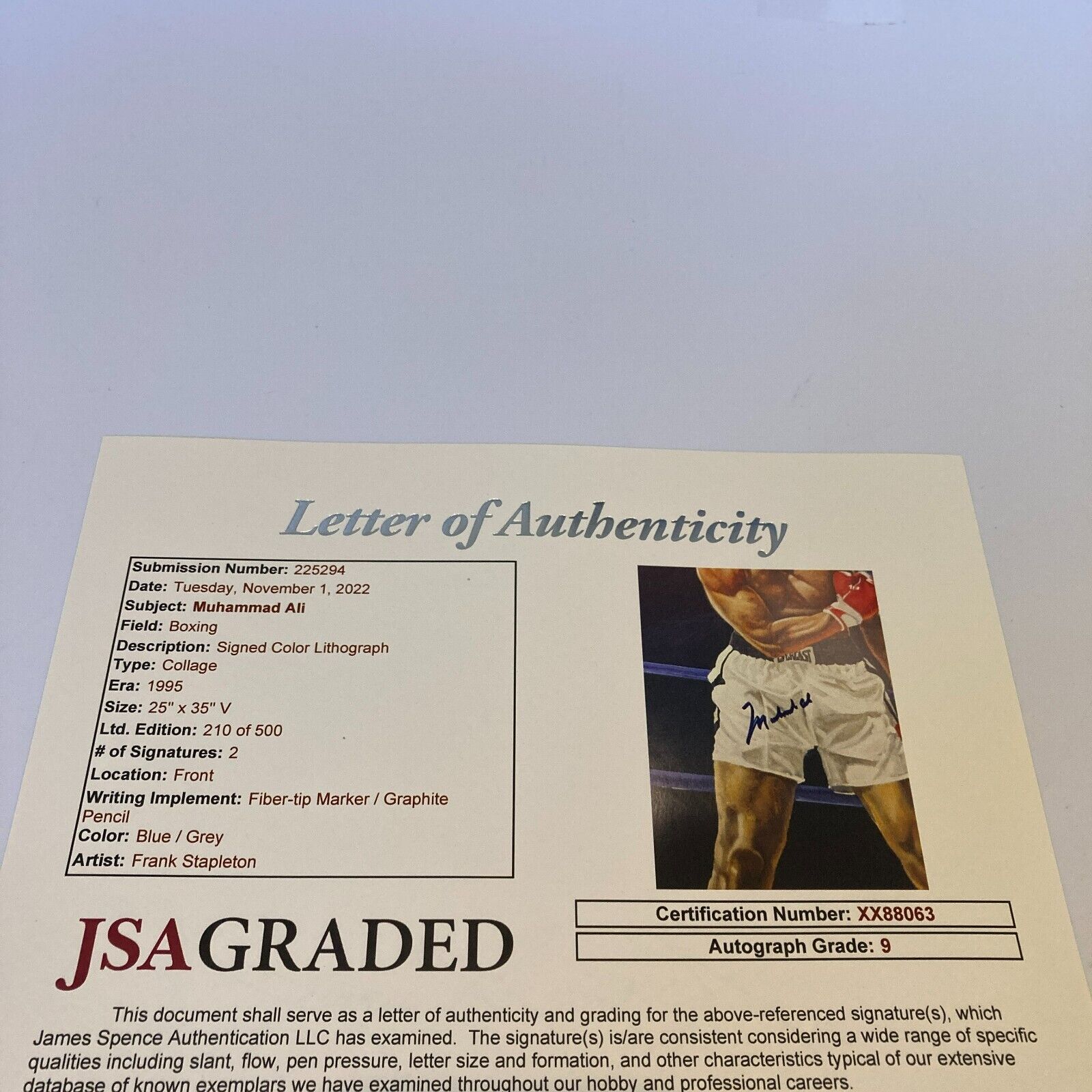 Muhammad Ali  Signed 25x35 Large Lithograph Photo JSA Graded 9 MINT