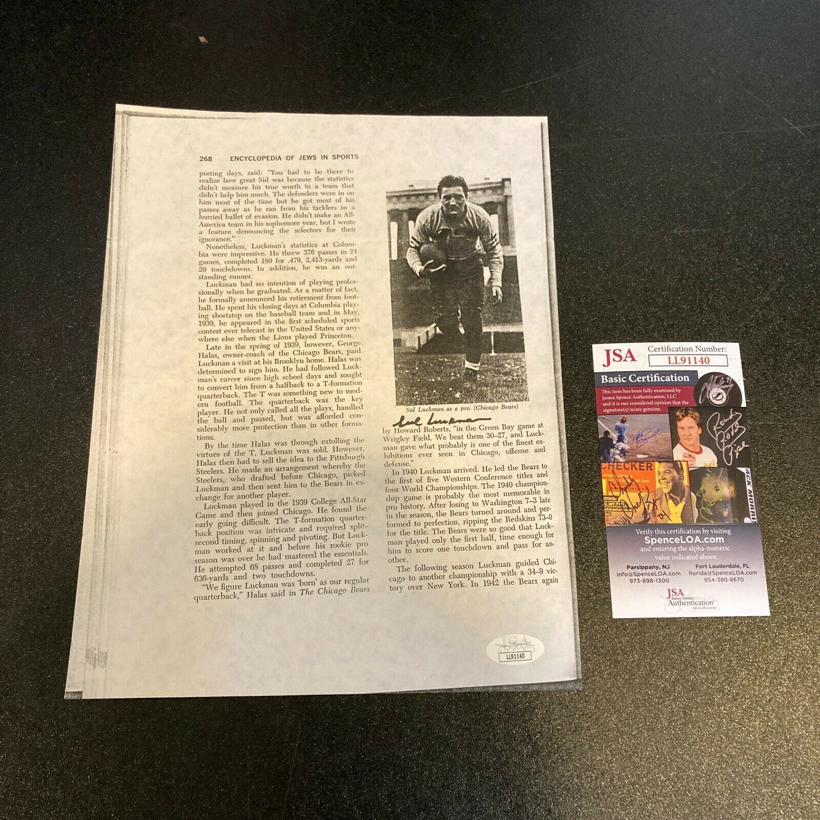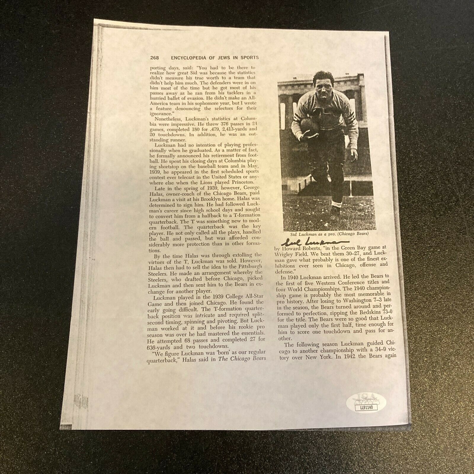 Sid Luckman Signed Autographed Photo Sheet JSA COA