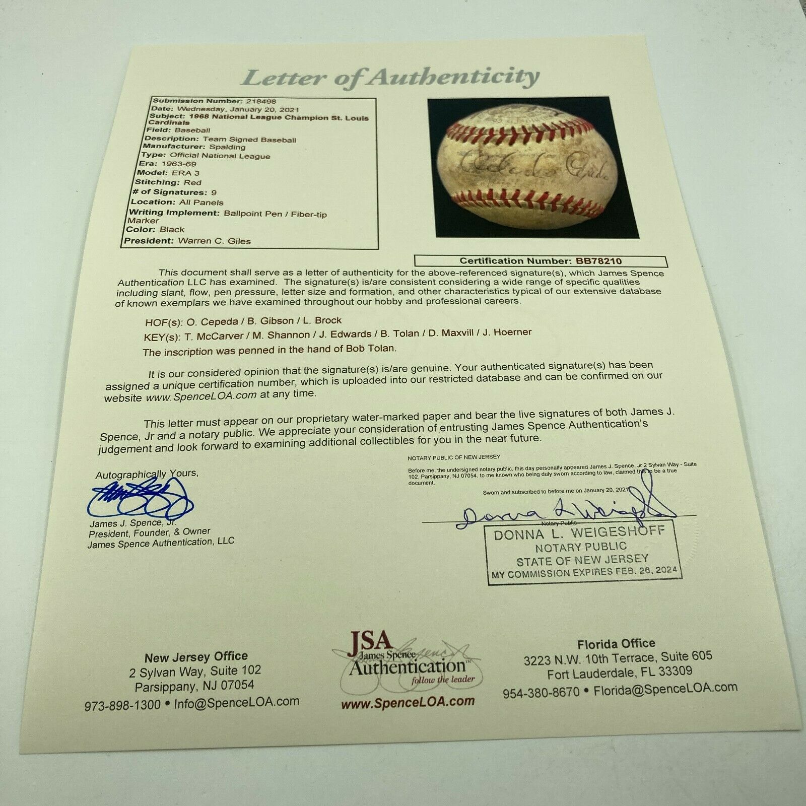 1968 St. Louis Cardinals National League Champs Team Signed Baseball JSA COA
