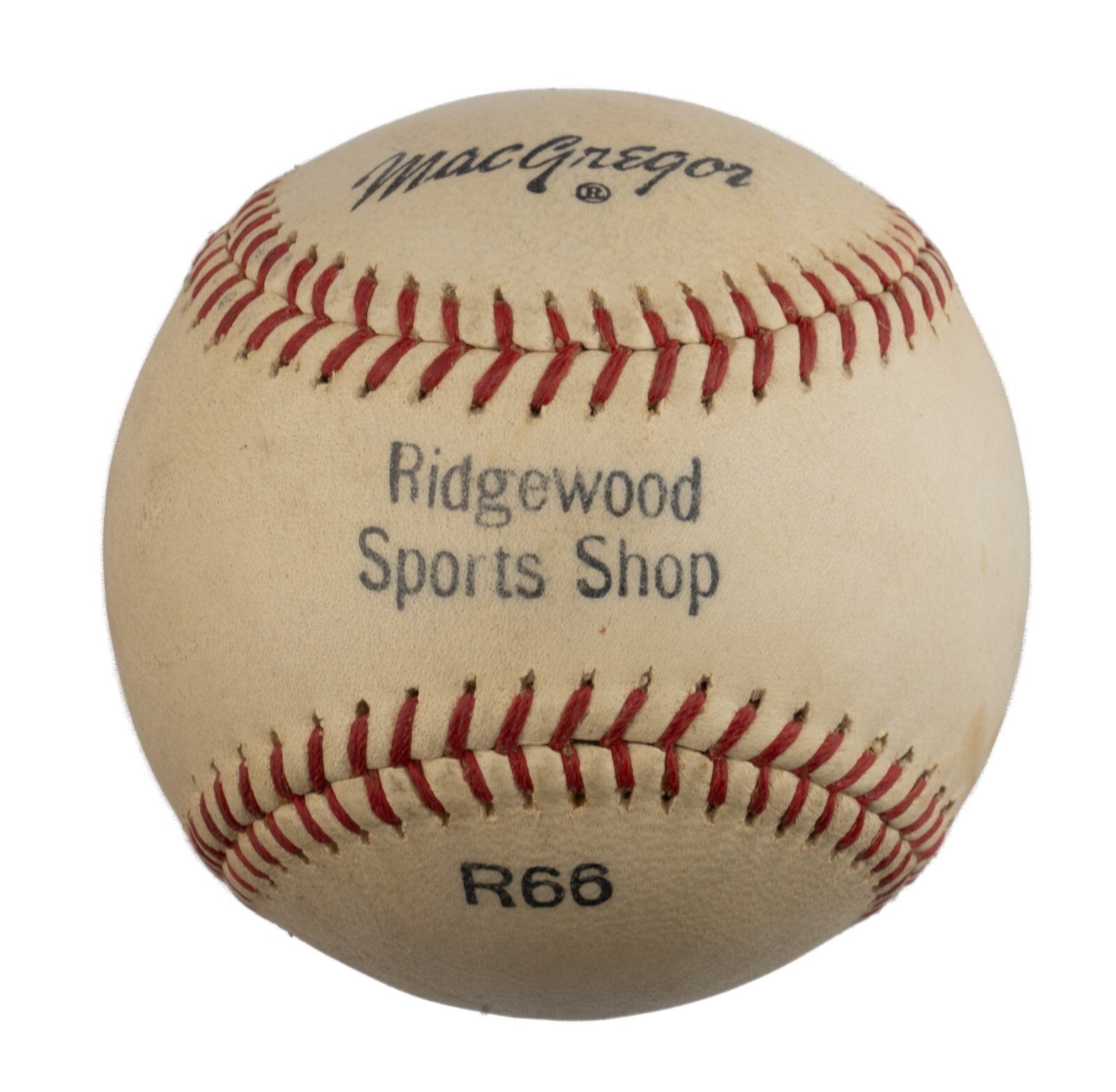 MacGregor "Ridgewood Sports Shop" baseball signed by catcher Bob O'Farrell. He has signed the ball in blue ink across the sweet spot. The date "1954" is written below his signature. The signature of Bob O'Farrell alone on a baseball is exceedingly rare. This is just the second example we have seen in the past 20 years. O'Farrell played 21 years in the major leagues with four different teams (Chicago Cubs, St. Louis Cardinals, New York Giants, and Cincinnati Reds), but he is best remembered today for throwing out Babe Ruth while attempting to steal second base for the last out of the final game of the 1926 World Series. O'Farrell also was named the National League MVP in 1926. The ball has light to moderate toning throughout and is in Excellent condition overall. Full LOA from James Spence/JSA.