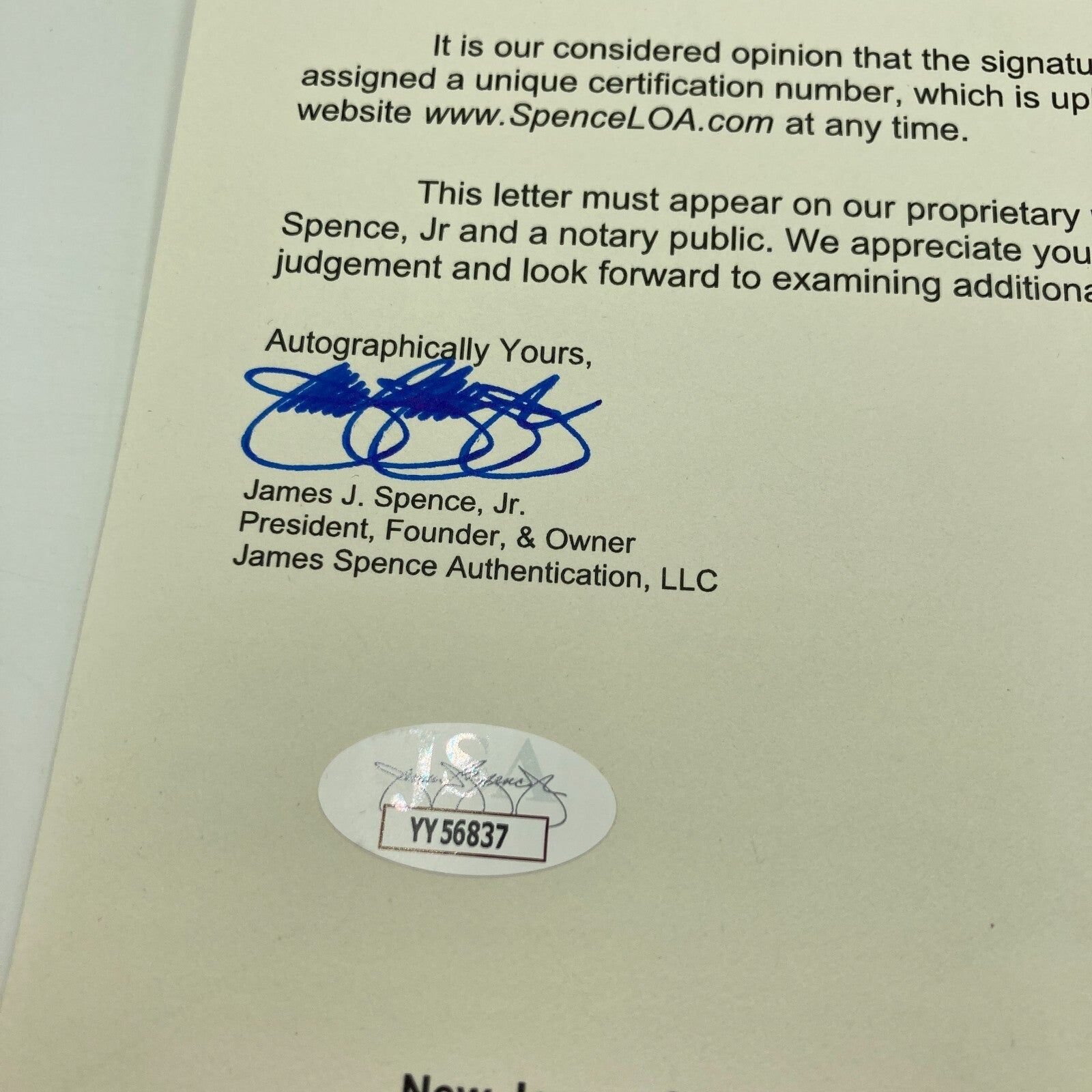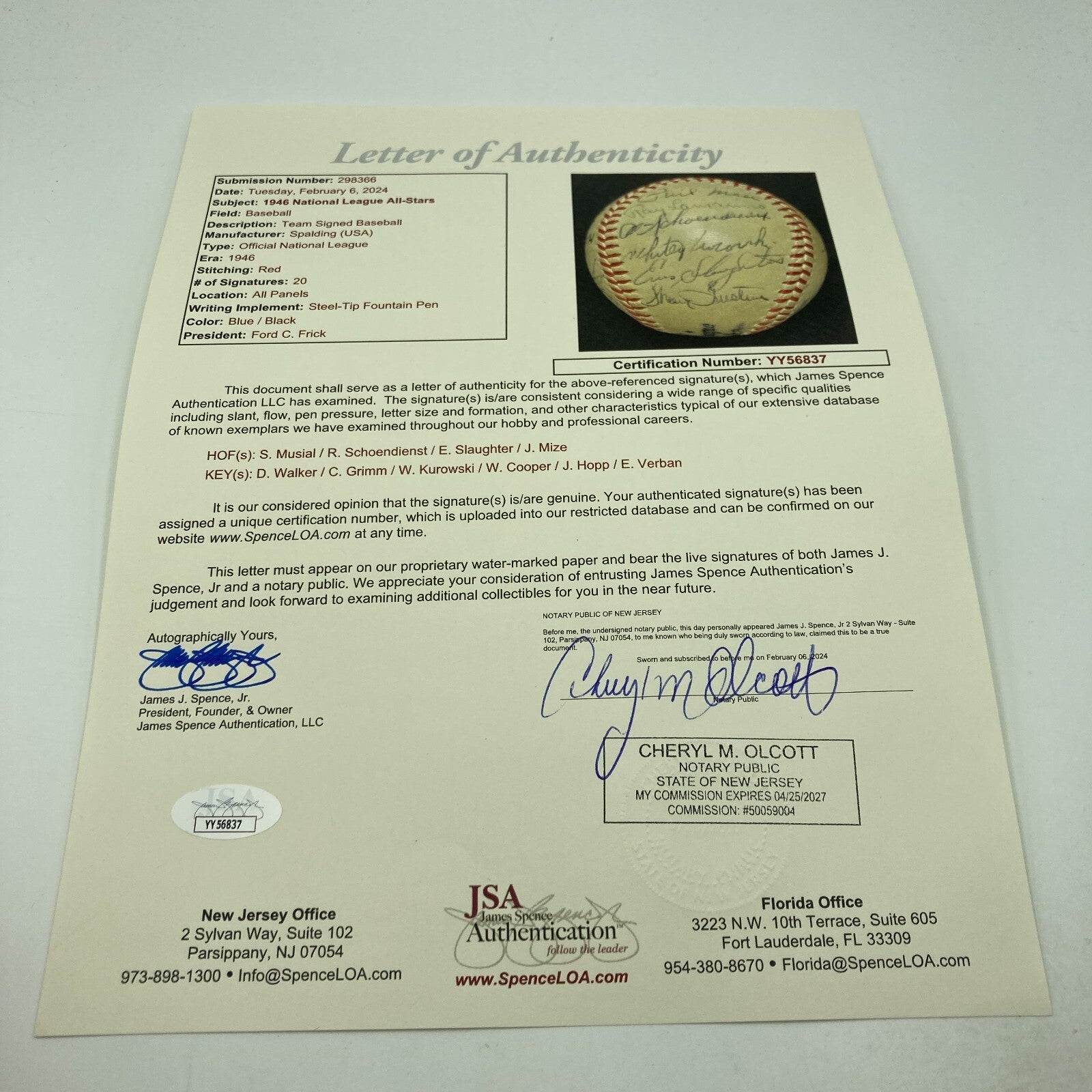 Comes with full letter COA from JSA.