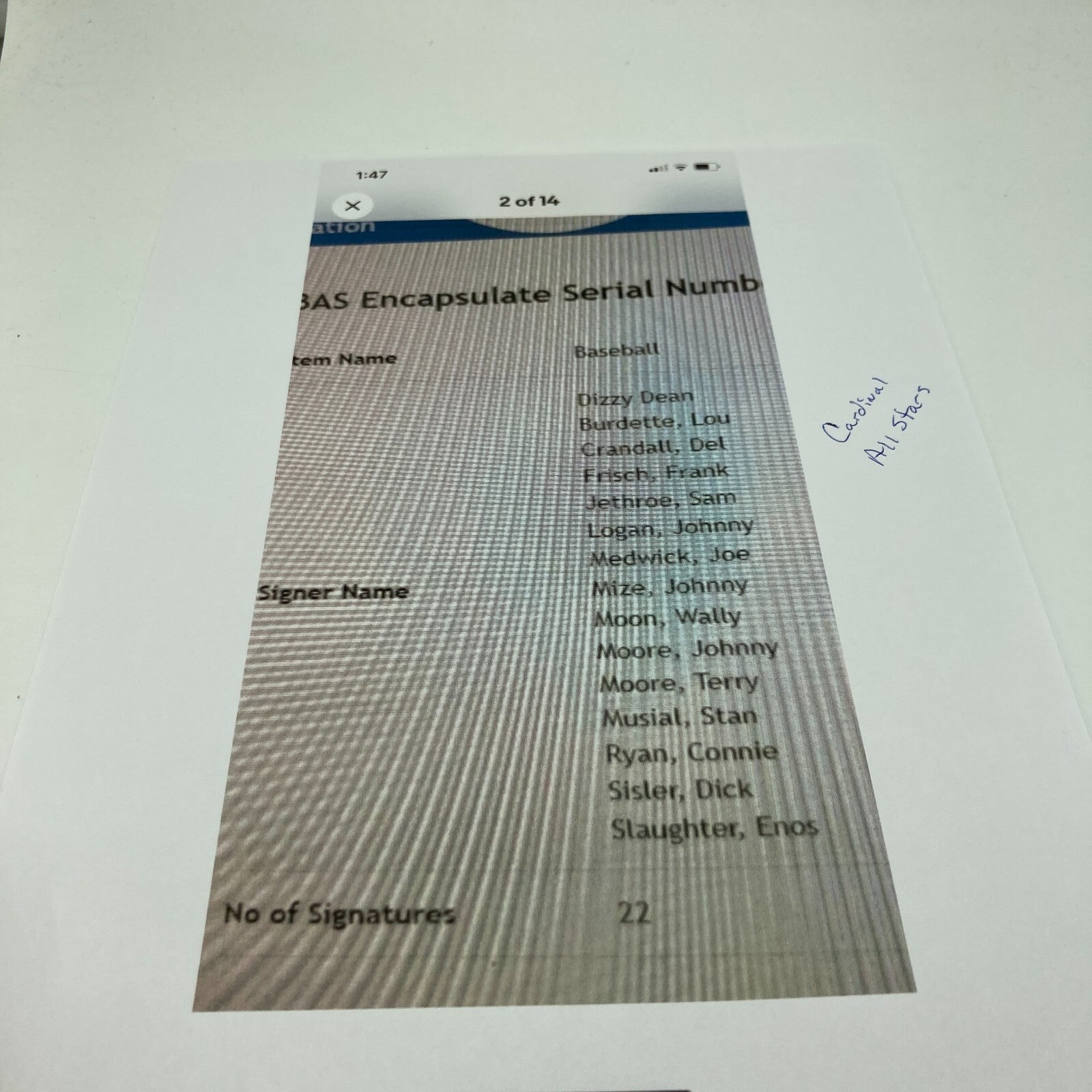 1950's St. Louis Cardinals HOF Multi Signed Baseball Dizzy Dean Stan Musial BAS