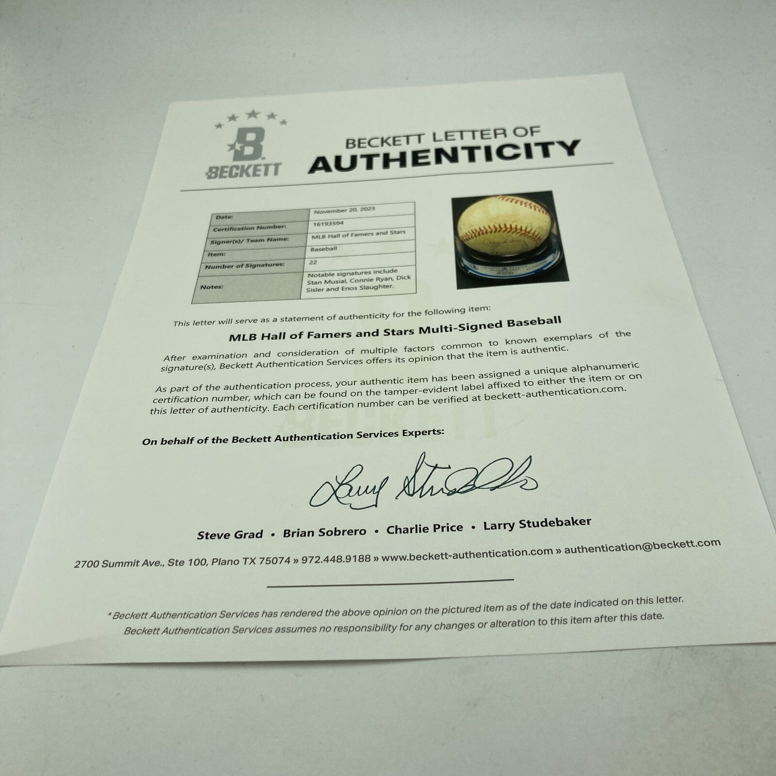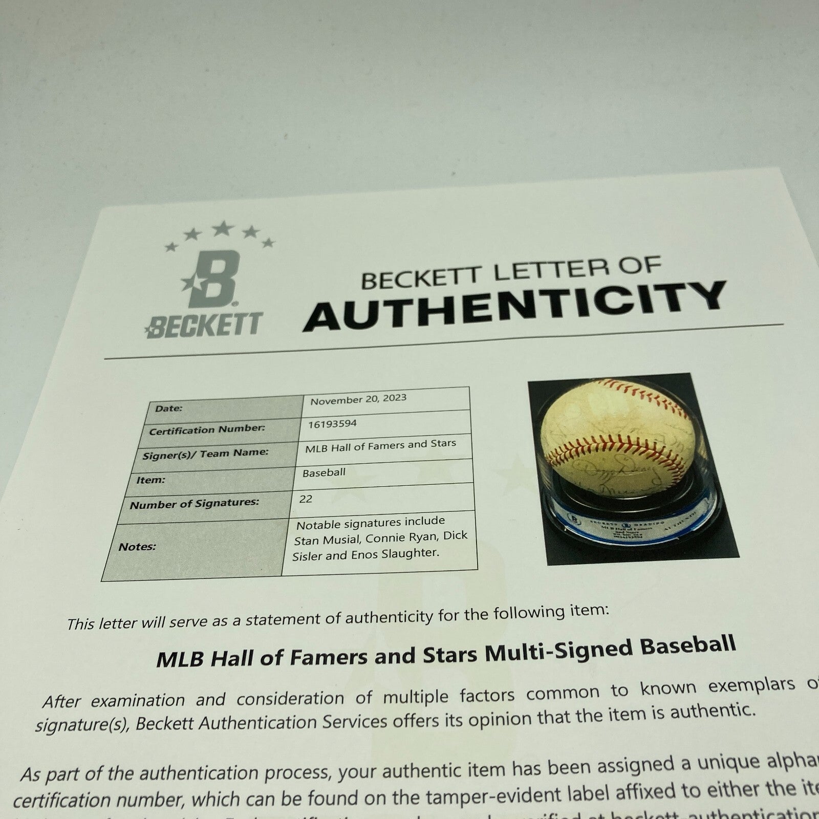 Comes with Beckett Certificate Of Authenticity.