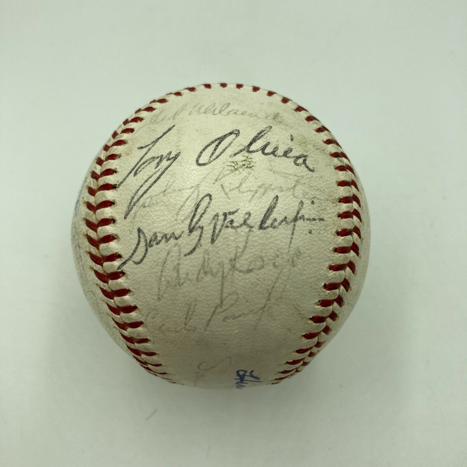 Sold out 1987 Minnesota Twins World Series Champs Team Signed W.S. Baseball Beckett COA 1987 Minnesota Twins World Series Champions team signed Official American League baseball with 34 signatures in all. Signatures include Kirby Puck... View full details