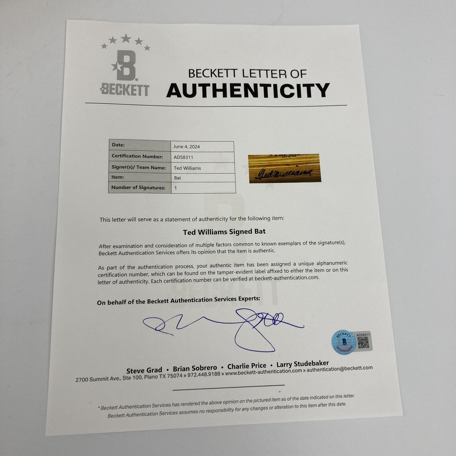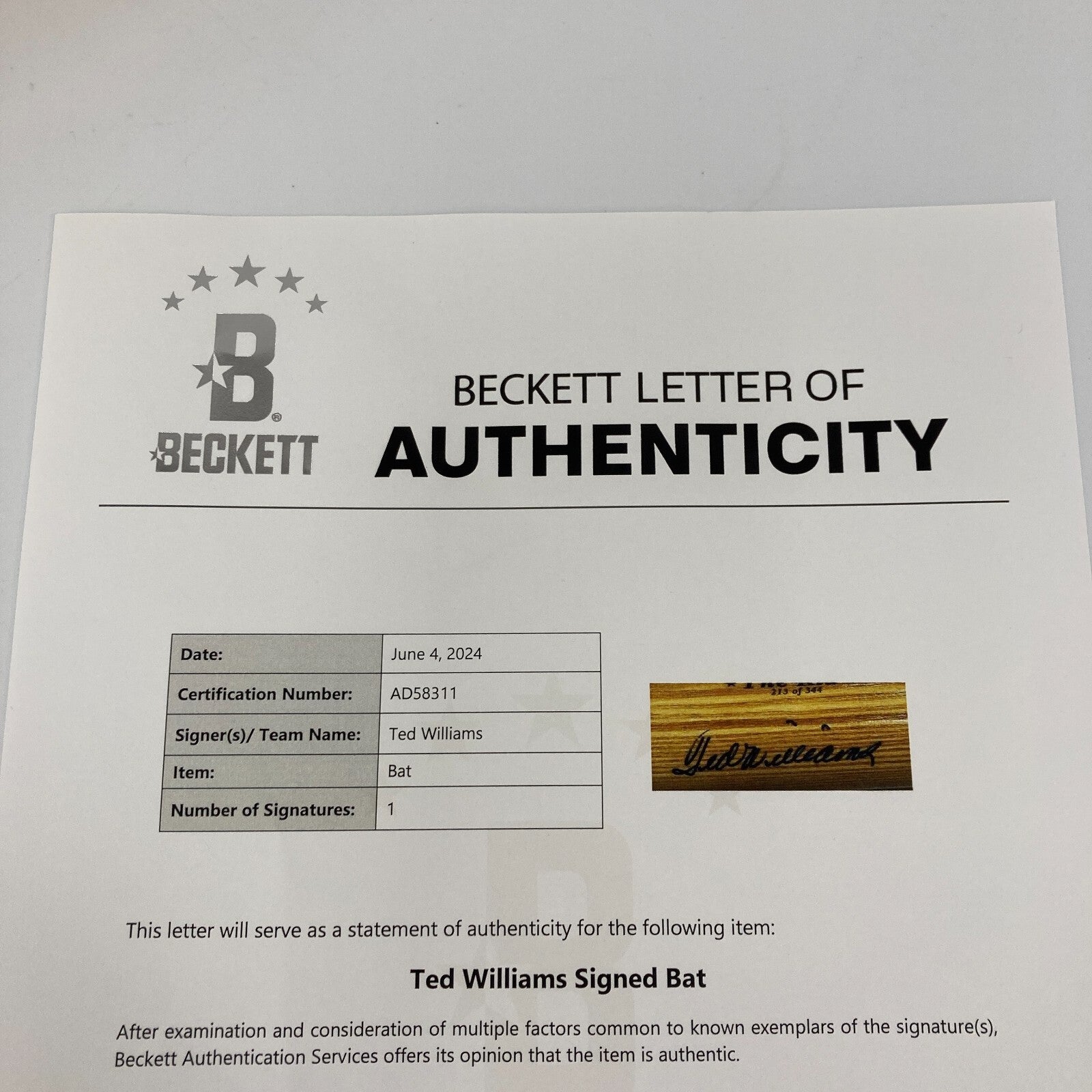 Beautiful Ted Williams Signed Louisville Slugger Game Model Baseball Bat JSA COA Graded 10 GEM MINT Bat #18 Listed with ExportYourStore.com