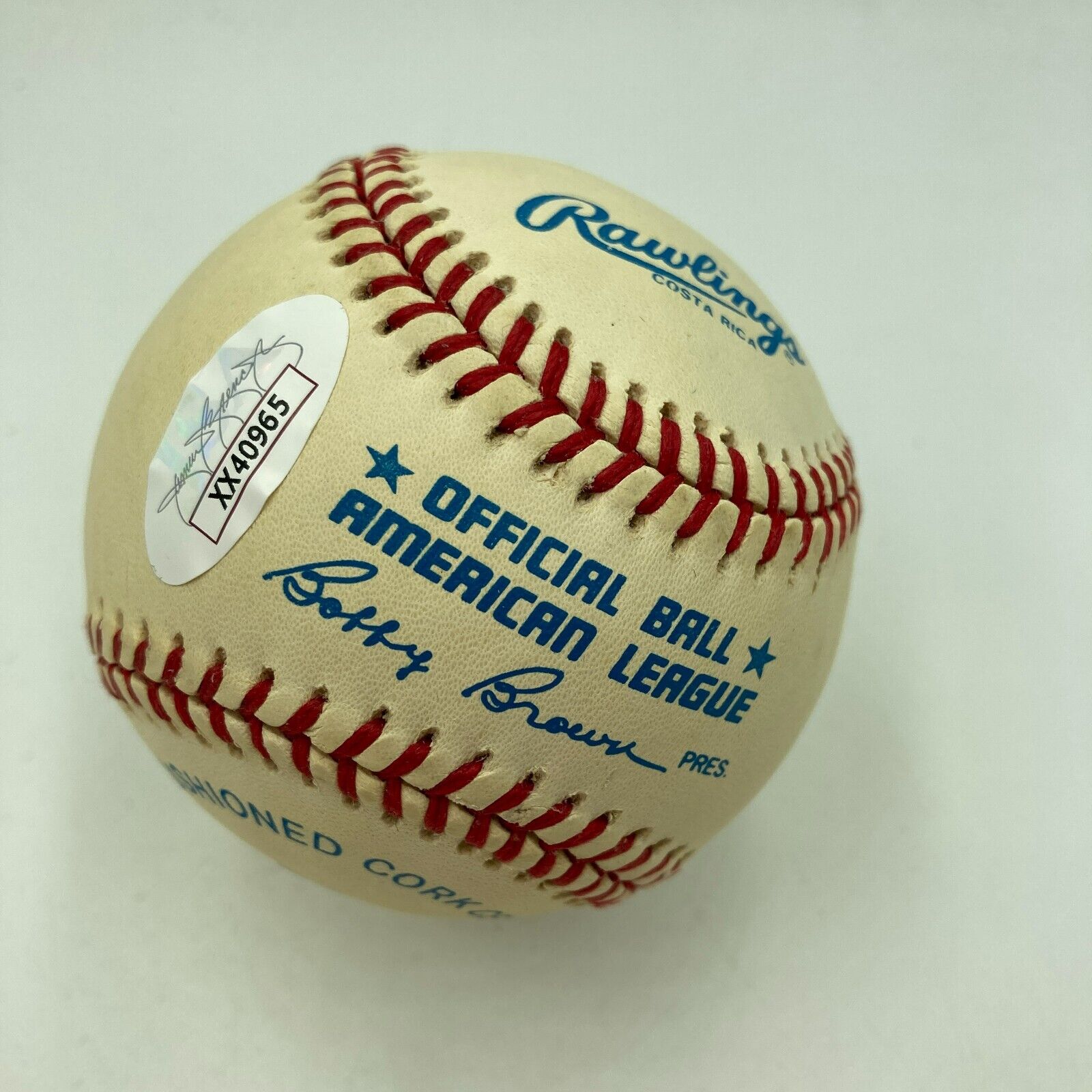 Sold out Joe Dimaggio Roger Maris Ted Williams HOF Multi Signed Baseball Beckett COA Offered is an Official American League Lee MacPhail baseball signed by 20 former MLB Hall of Famers and stars in blue ballpoint ink. Key signatur... View full details