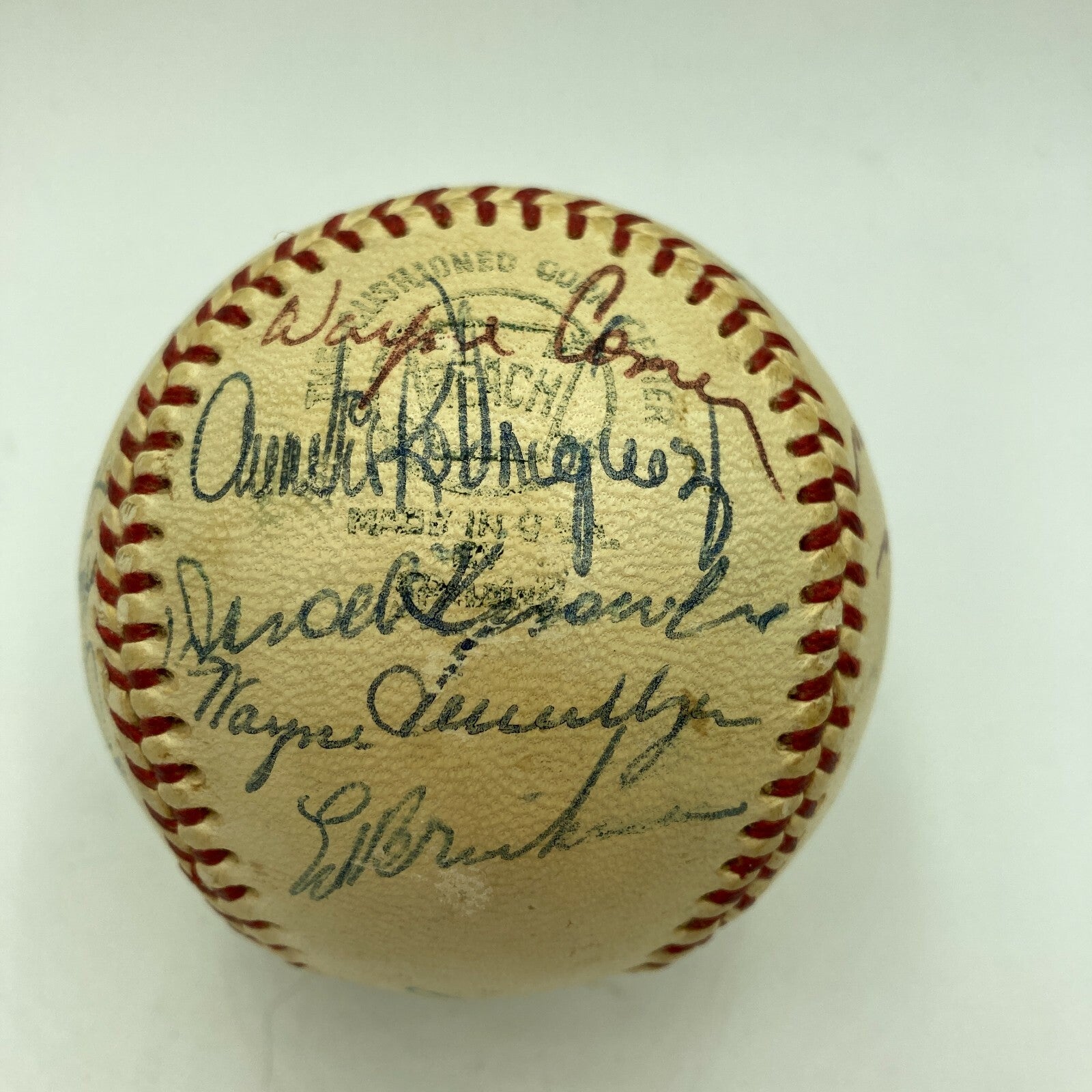 Before the Texas Rangers, there was the second incarnation of the Washington Senators (1961-1971), long led by the "Capitol Punisher" Frank Howard and briefly spurred to success by Manager Ted Williams. Hailing from Teddy Ballgame's second season and the Senators' second-to-last season, this creamy-toned Official American League (Cronin) ball features 23 signatures.