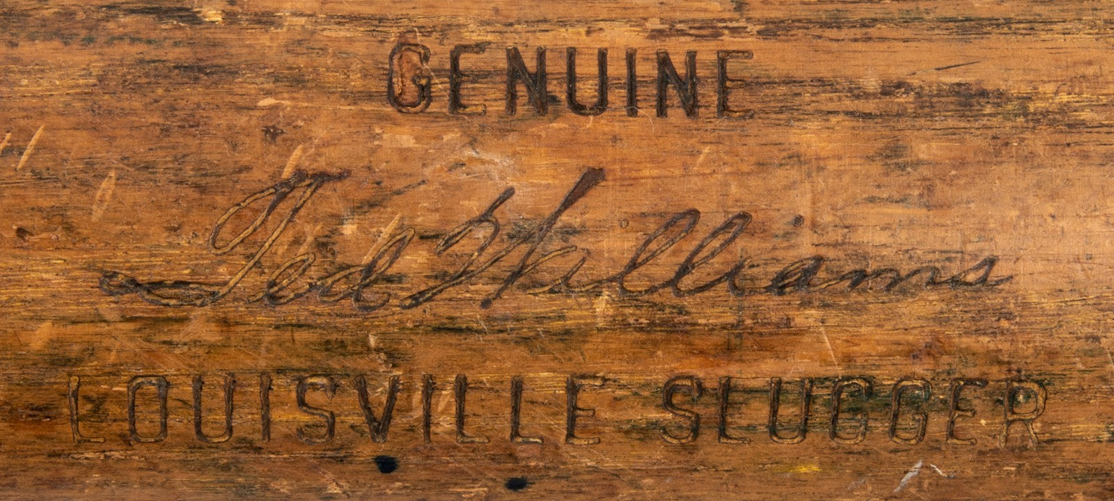 Presented is a Louisville Slugger Hillerich & Bradsby W183 professional model bat game-used by Boston Red Sox legend, six-time batting champion, two-time American League Most Valuable Player, and Baseball Hall of Famer, Ted Williams, from 1955 to 1957. Regarded as one of the greatest hitters in the history of baseball, "Teddy Ballgame's" illustrious 19-year career was briefly interrupted by military service during World War II and the Korean War. Despite the three-year hiatus, Williams still managed to record 521 homers and 1,839 RBIs in his career. From 1955 to 1957, Williams' age 36, 37, and 38 seasons, respectively, he batted .364 with 90 home runs and 252 RBIs in 366 combined games. In 1956, Williams became the fourth player in MLB history to hit 400 home runs. Following the 1957 MLB season, where he enjoyed one of his best seasons by leading the league in batting average (.388), on-base percentage (.526), and slugging percentage (.731), while mashing 38 homers as a 38-year-old man, Williams inked a $125,000 contract with the Red Sox, the most lucrative contract in baseball history, at the time.