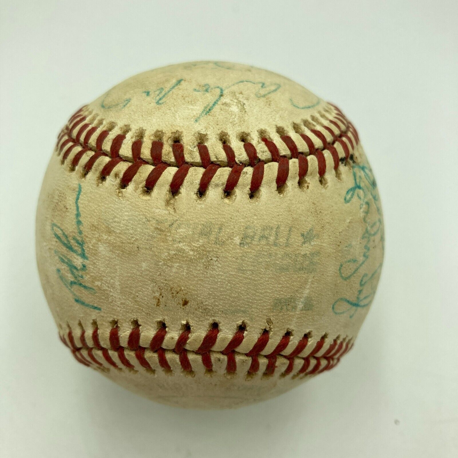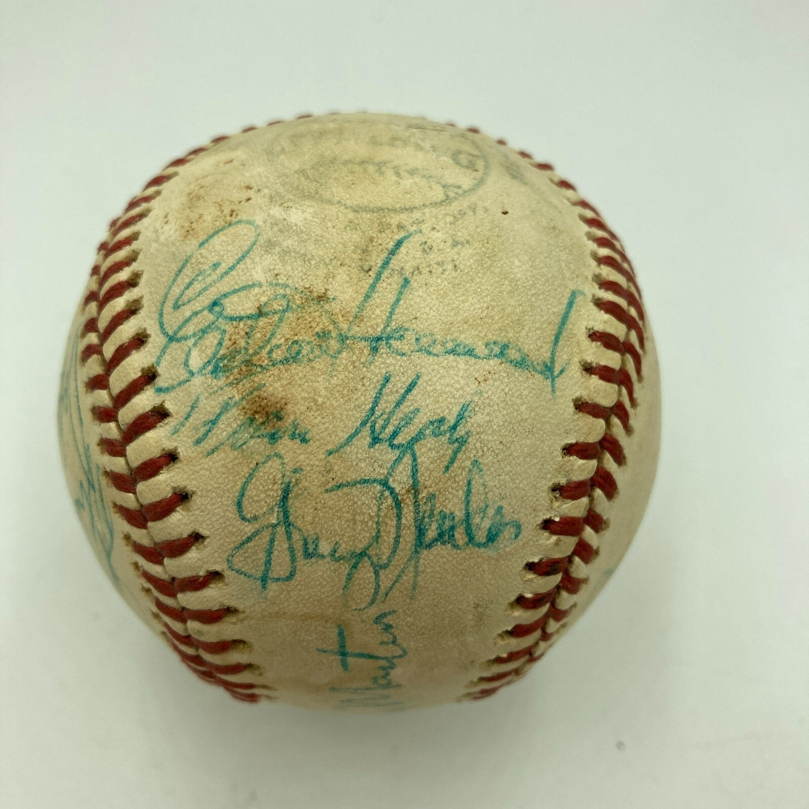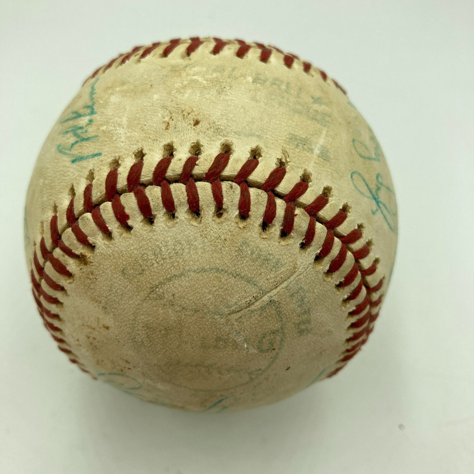 Extraordinary 1977 New York Yankees World Series Champions team signed Official American League baseball. 21 signatures with Thurman Munson, Yogi Berra, Bob Lemon and many others.