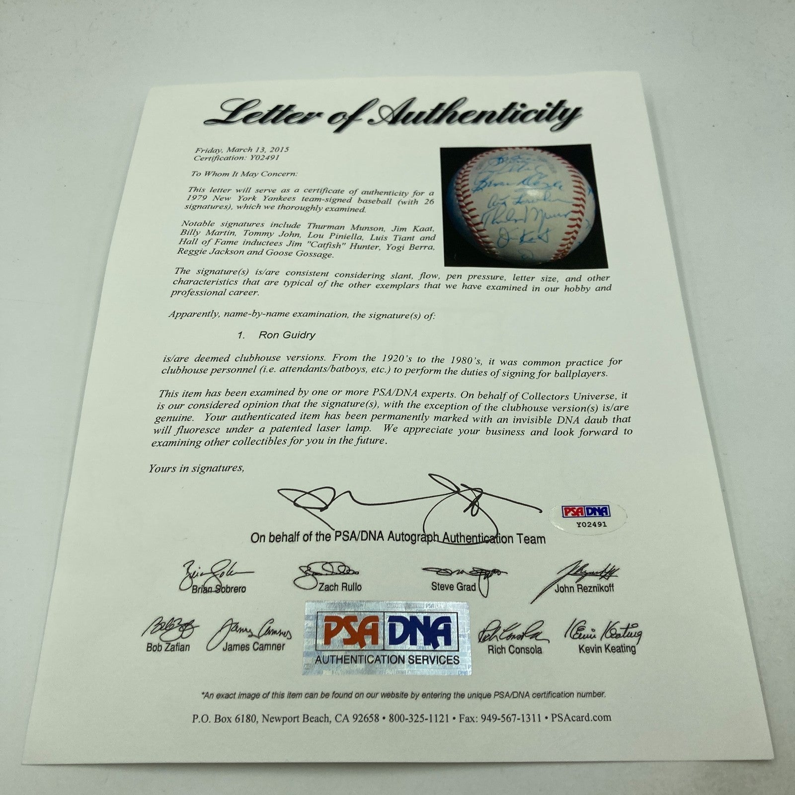 Beautiful Thurman Munson 1979 New York Yankees Team Signed American League Vintage Baseball. 26 signatures. Munson died in August 1979 so it's nearly impossible to find a 1979 ball with him.