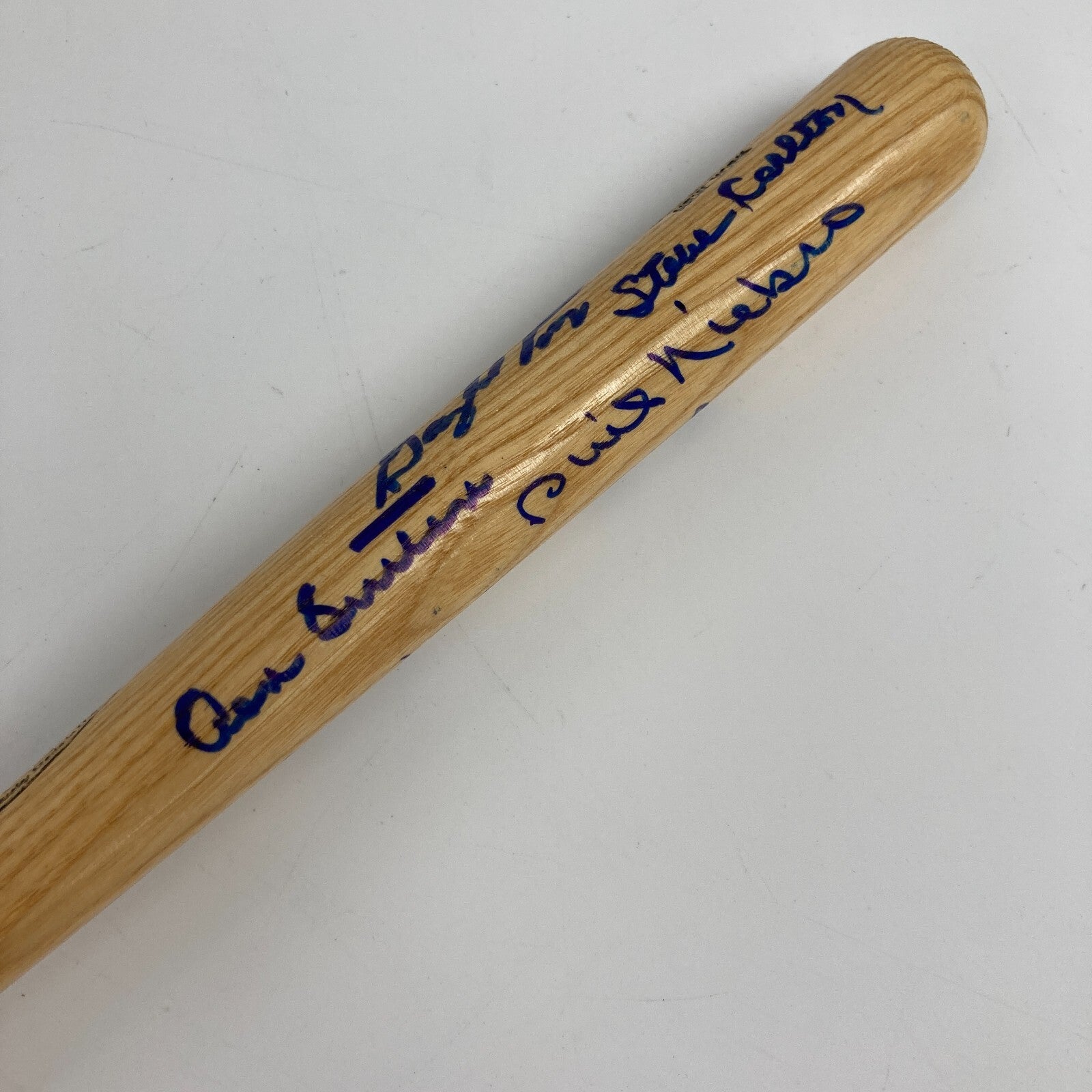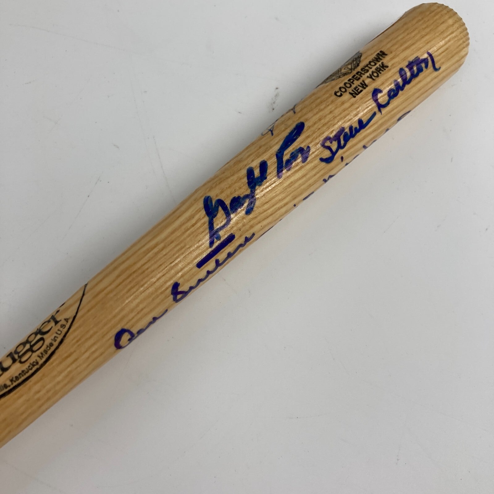 300 Win Club multi-signed mini bat. 16" Louisville Slugger with Baseball HOF logo signed by (8) including Warren Spahn, Early Wynn, Gaylord Perry, Don Sutton, Phil Niekro, Tom Seaver, Nolan Ryan, and Steve Carlton. Comes with JSA COA.