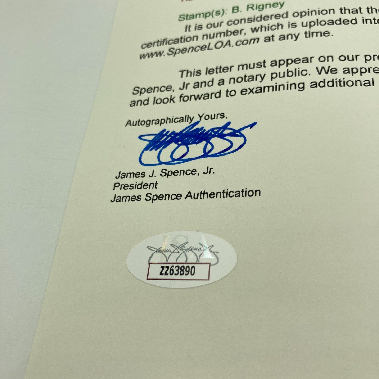 Comes with full letter JSA COA.