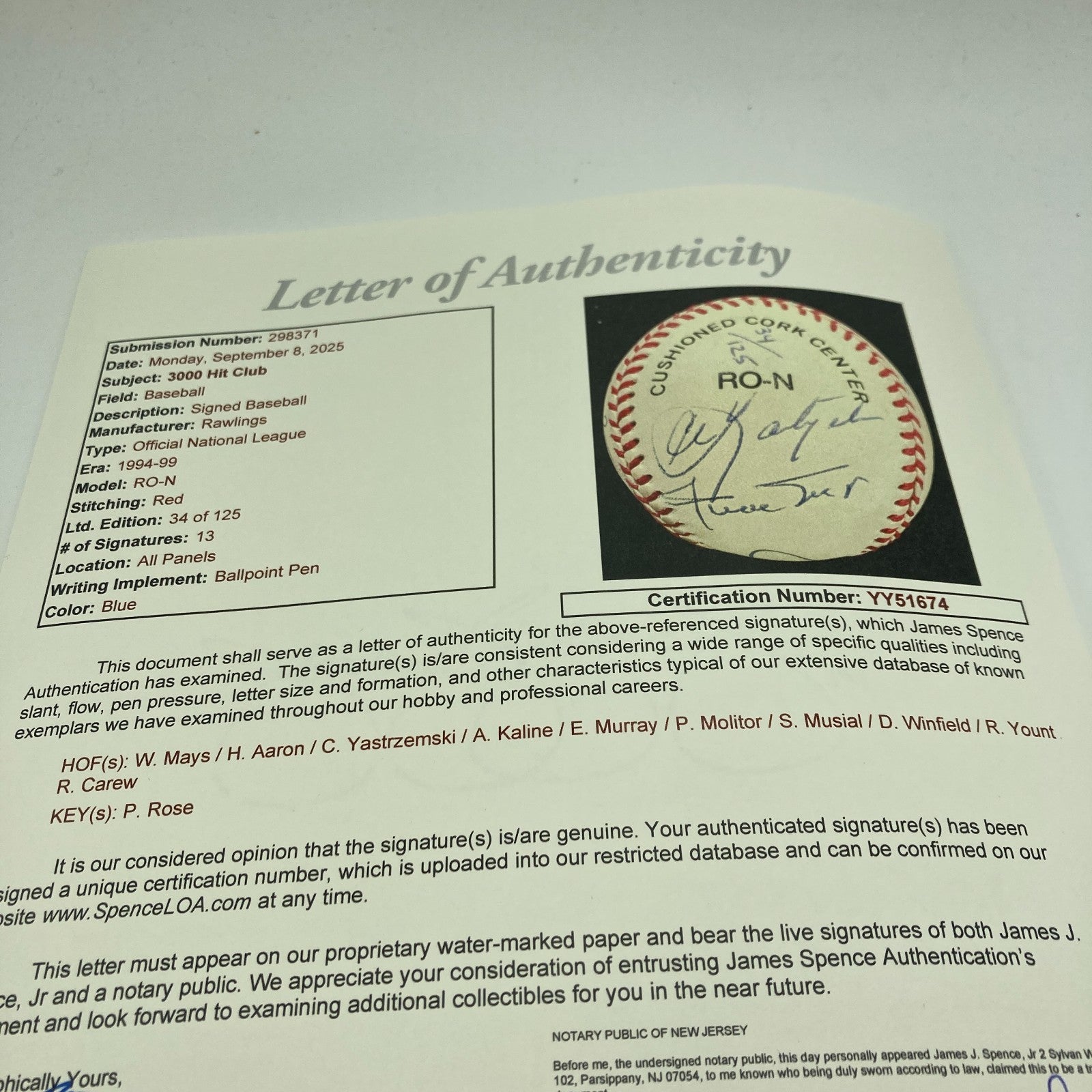 3000 Hit ball with Hank Aaron, Willie Mays, Eddie Murray, Paul Molitor, Dave Winfield, Al Kaline, Pete Rose, Stan Musial, Carl Yastrzemski, Lou Brock, George Brett, Robin Yount & Rod Carew LE /125.