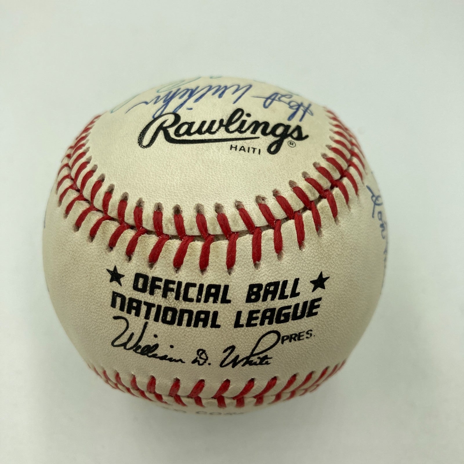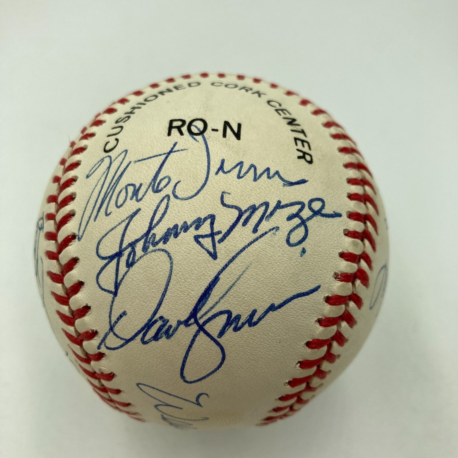 San Francisco Giants HOF Legends Signed Baseball. 16 signatures with: Willie Mays, Juan Marichal, Whitey Wilhelm, Orlando Cepeda, Willie McCovey, Monte Irvin, Johnny Mize, Bobby Thomson, Dave Kingman.