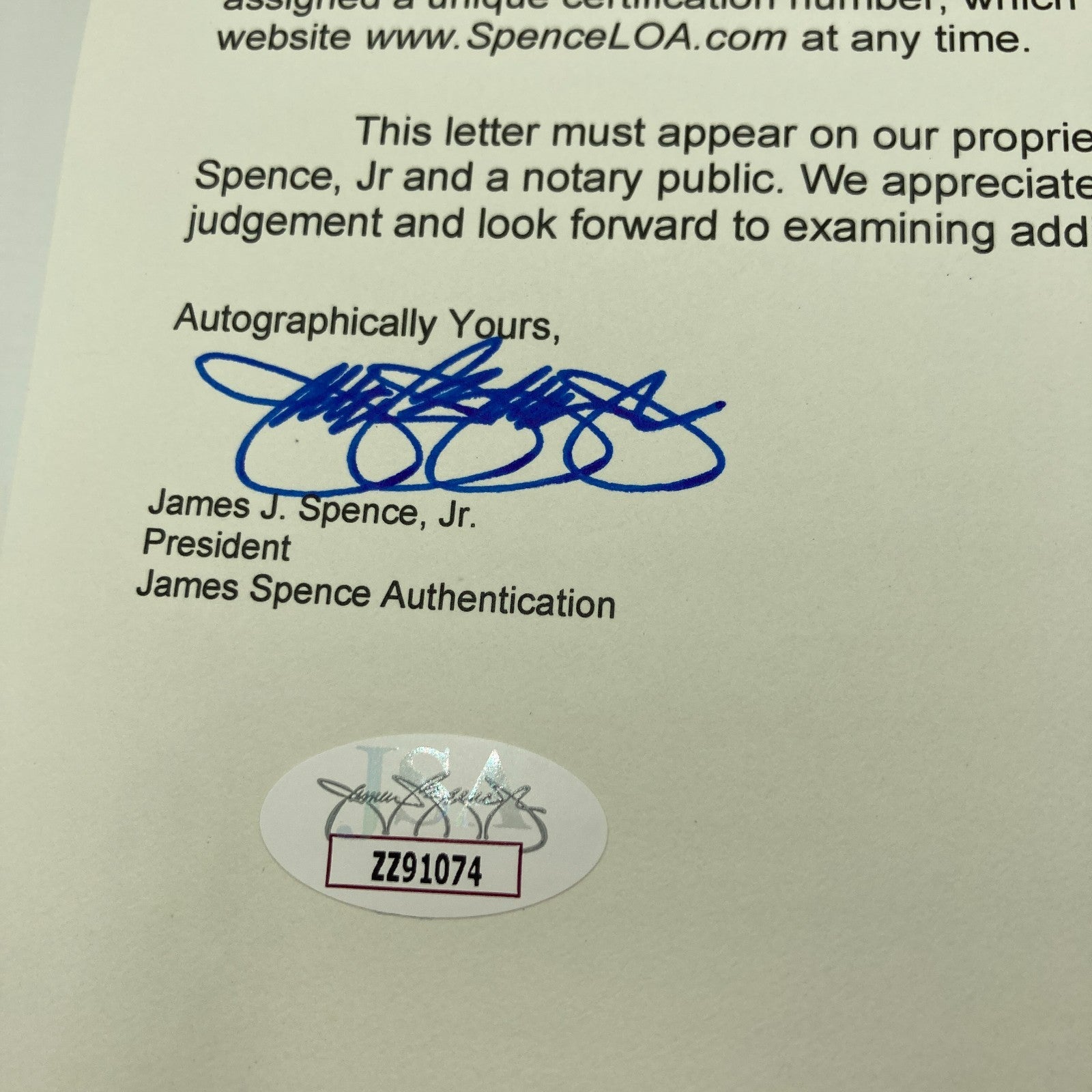 Comes with full letter JSA COA.