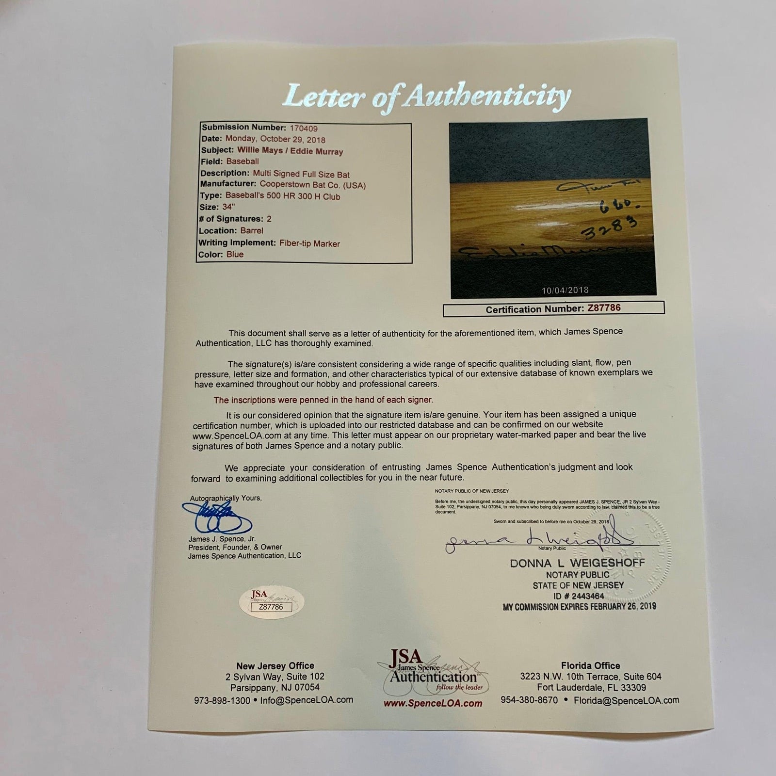 Click or scroll to zoom Tap or pinch to zoom Click or scroll to zoom Tap or pinch to zoom Click or scroll to zoom Tap or pinch to zoom Click or scroll to zoom Tap or pinch to zoom Click or scroll to zoom Tap or pinch to zoom Click or scroll to zoom Tap or pinch to zoom Click or scroll to zoom Tap or pinch to zoom Click or scroll to zoom Tap or pinch to zoom Willie Mays 660 Home Runs 3283 Hits Eddie Murray 504 HR 3255 Signed Bat JSA COA $995.00 1 2 3 4 5 6 7 8 9 10+ Quantity Quantity Add to cart This item is a recurring or deferred purchase. By continuing, I agree to the cancellation policy and authorize you to charge my payment method at the prices, frequency and dates listed on this page until my order is fulfilled or I cancel, if permitted. Rare Willie Mays "660 Home Runs 3283 Hits" and Eddie Murray "504 HR 3255 Hits, HOF 2003" Signed Limited Edition Bat With Full letter JSA COA #9193827